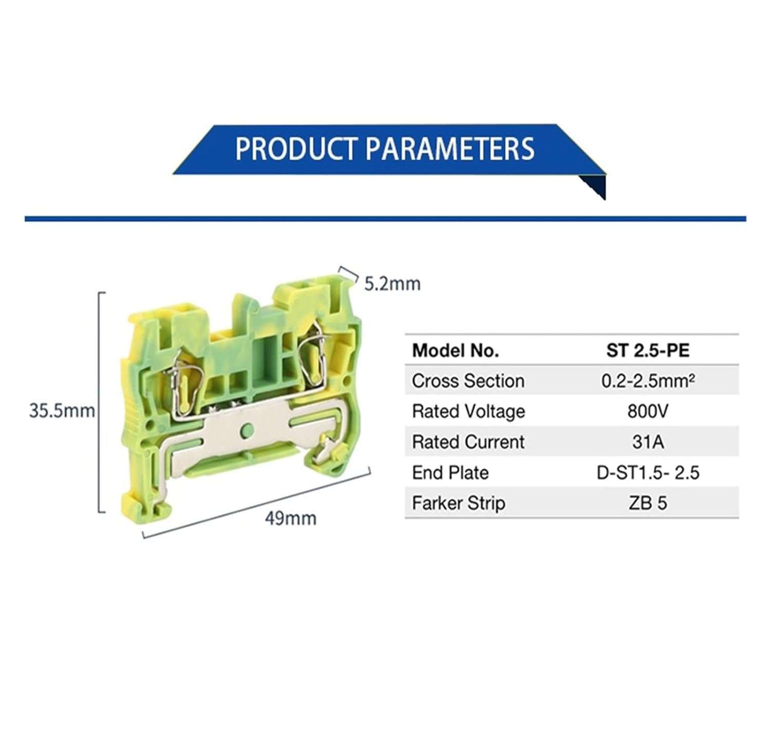 Ground Circuit Terminal Blocks10-Piece ST2.5-PE Grounding Wire Connector Spring Cage Protective Ground Loop Pull-Type ST 2.5 PE DIN Rail Terminal Blocks