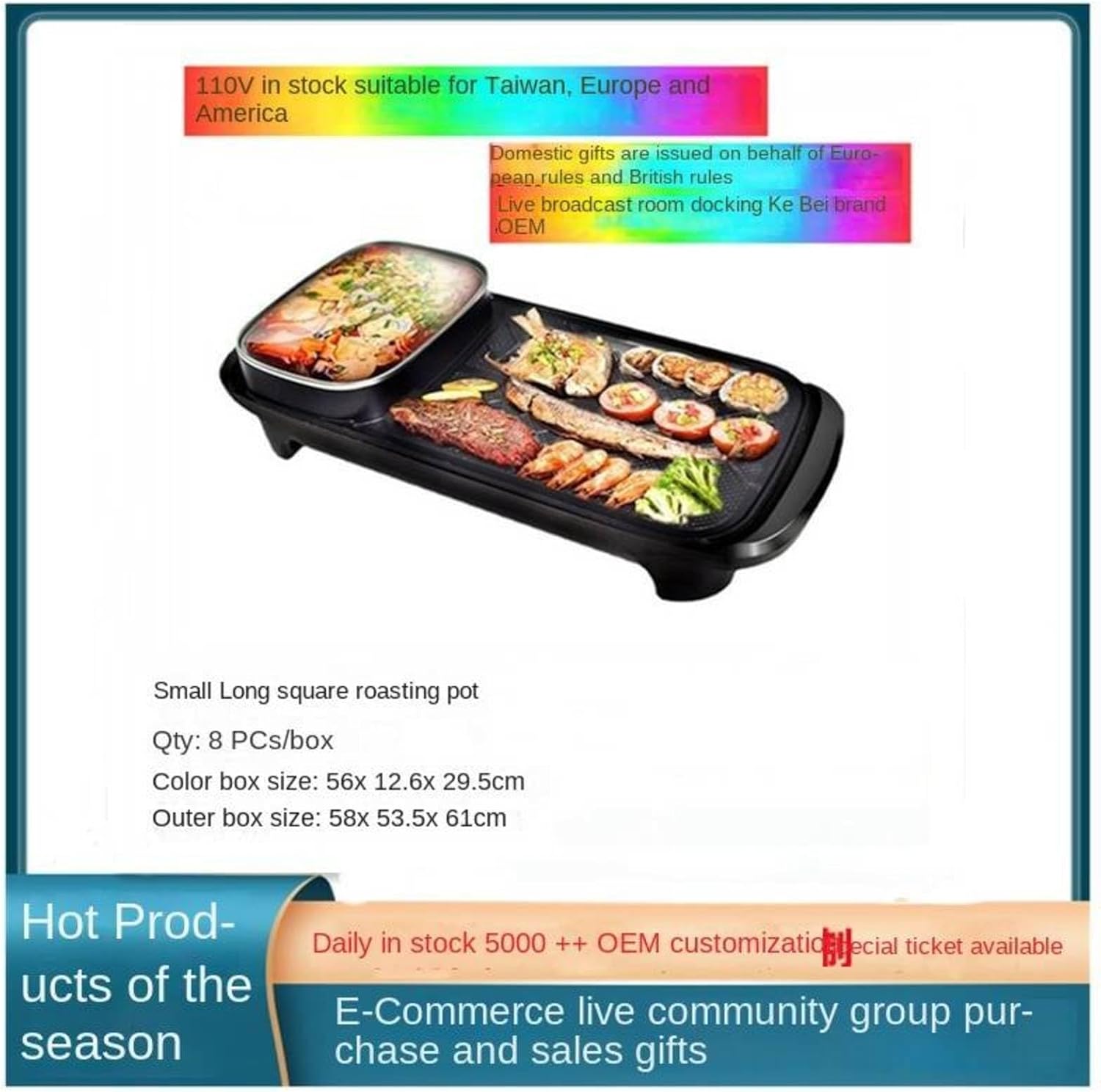 Type: electric heating/hot potPower: 1201W (inclusive)-1500W (inclusive)Electric heating/hot pot function: steamingElectric heating/hot pot function: stir-fryElectric heating/hot pot function: FriedElectric heating/hot pot function: FriedElectric heating/hot pot function: CookingElectric heating/hot pot function: StewElectric heating/hot pot function: BraisedElectric heating/hot pot function: Hot PotElectric heating/hot pot function: teppanyakiBody material: MetalCapacity: 2L (inclusive)-3L (Exclusive)Inner cooking pan depth: 8cmColor: Large two round endsColor: 34CM Sun Moon potColor: G-20 rinse roast all-in-one potColor: 3-in-1 double-sided ovenwareColor: Small size two round endsColor: rectangular rinse and roast potColor: 807 rinse and roast potSpecification: 7 people-8 peopleAdditional functions: temperature adjustmentAdditional features: Anti-dry burning functionAdditional features: Rinse and roast two mealsMaterial of liner: aluminum alloyControl mode: MechanicalRated Voltage: 110VProduct Size: 69CMProduct Weight: 43C Certificate No.: 2021180717027648Shell Technology: spraying (UV paint, rubber paint, metallic paint, piano paint, pearl powder)Product Specification: 220V European standard suitable for foreign useProduct Specification: 110V voltage suitable for Europe, America and TaiwanProduct Specification: 220v Australian regulationsPot mouth specification: 26cm (inclusive)-30cm (inclusive)