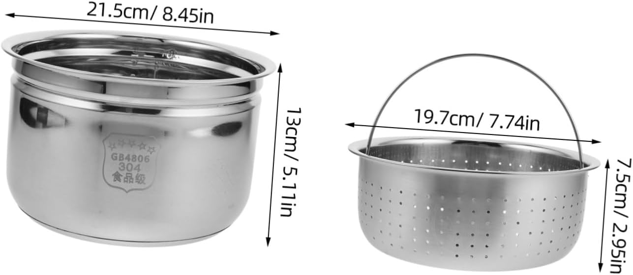 Package List 1 x inner pot 1 x drain basket Features -Color:Silver air fryers liners -Size:19.70X7.50X7.50cm/7.74X2.95X2.95in(basket) rice cooker liner -Material:Stainless steel nonstick inner pot -Size:21.50X13.00X13.00cm/8.45X5.11X5.11in(inner pot) cookware inner pot -Capacity:4L kettle teapot electric -Design: constructed from stainless steel, this inner pot is both and easy to clean, providing a healthier and more sustainable cooking option stainless steel rice pot -Easy water draining: the rice draining basket allows for easy and efficient water drainage, keeping your rice soft and fluffy without becoming soggy rice cooker inner pot replacement - Rice : the rice and soup separation feature that the rice is cooked to a texture, with enhanced flavor and aroma electric water kettle -Steaming tray: the steaming tray is designed to help control in rice, making it ideal for those who need to monitor their sugar intake electric hot potGoods Descriptionrice cooker replacement parts The stainless steel rice cooker inner pot is a must-have for any home chef.electric water kettle The rice cooker liner is designed to distribute heat evenly, ensuring consistent cooking results.rice cooker replacement pot This replacement inner pot fits electric cookers and rice cookers, offering a reliable cooking .rice cooker liner The rice draining basket helps remove excess water, making your rice every time.stainless steel inner pot Use the separator to cook multiple dishes simultaneously, saving time and effort