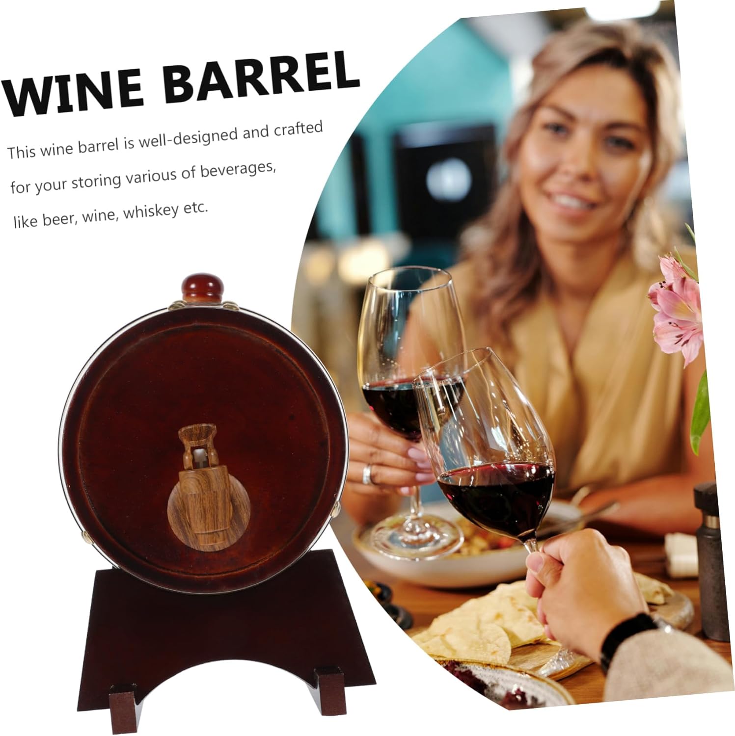 Package List 1 x wood barrel 1 x wooden rack Features -Capacity: 1.5L Wine Container -Color:Dark Red Wood Wine Barrel -Size:20.00X20.00X20.00cm/7.86X7.86X7.86in Delicate Wine Barrel Dispenser -Material: wood Bar Wine Dispenser - The wood barrel with delicate appearance can also be used as home or scene decoration Wooden Beverage Bucket. - for the wine lover, the proper capacity wine barrel is a present for any connoisseur of spirits Barrel For Wine. - The wood barrel has a wide range of uses and can be used for storing wine, beer, , whiskey, beverages etc Wooden Barrel. - With wood material and fine craftsmanship, this barrel is strong and for a long time Wooden Wine Barrel. - Equipped with faucet, convenient for dispense, and with a wood stand, stable placement Useful Wine Bottle.Goods DescriptionUseful Wine Bottle The Wooden Wine Barrel is a beautifully crafted display piece.Wood Barrels For Decoration Its exquisite craftsmanship makes it not only a item but also a decorative piece for bars, wineries, and exhibitions.Wooden Barrel With its enough capacity, it is for showcasing and storing your favorite red wines.Wood Bucket The classic design of the wine barrel elegance and sophistication, adding a touch of taste and texture to any setting