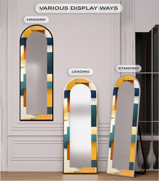 Arch Shaped Floor Mirror with Metal Frame – Gold, Black, or Silver | Leaning, Standing, or Wall-Mounted Full Body Mirror Add artistic charm and functional elegance to your space with our Arch Full Length Mirror, designed to make a bold statement in any room. Whether styled in a bedroom, hallway, or living room, this arched floor mirror enhances your interior with timeless beauty. The edges of the mirror consist of pictures in the colors of your choice printed on tempered glass using the UV printing technique. The mirror itself is mounted on top of this printed tempered glass, giving it a vibrant, durable, and luxurious finish that stands out in any setting. Measurements; TOTAL SIZE (Uv Printed Tempered Glass + Mirror) : 23,5’’W x 67’’ H ONLY MIRROR SIZE : 17’’W x 60,5’’ H Choose from three premium frame finishes—Arch gold mirror, sleek black, or arch floor mirror silver—and enjoy flexible use as a Standing Floor Mirror, Arched Wall Mirror, or casually leaned for a designer look. This is more than a Full Body Floor Mirror with Stand—it’s a piece of functional art. Multiple Placement Methods, This arched floor mirror comes with a U-shaped bracket, which you can freely place in the living room or bedroom. For your convenience in hanging on the wall, special hangers are designed on the back of the mirror.Our premium mirrors are crafted by gluing 4mm tempered glass to a 4mm mirror, combining durability and style. The tempered glass features UV printing for a glossy, vibrant look, while both the glass and mirror have smooth, grinded edges for safety. The hidden metal hanger ensures a sleek, ready-to-hang design, making it an elegant and functional addition to any room.