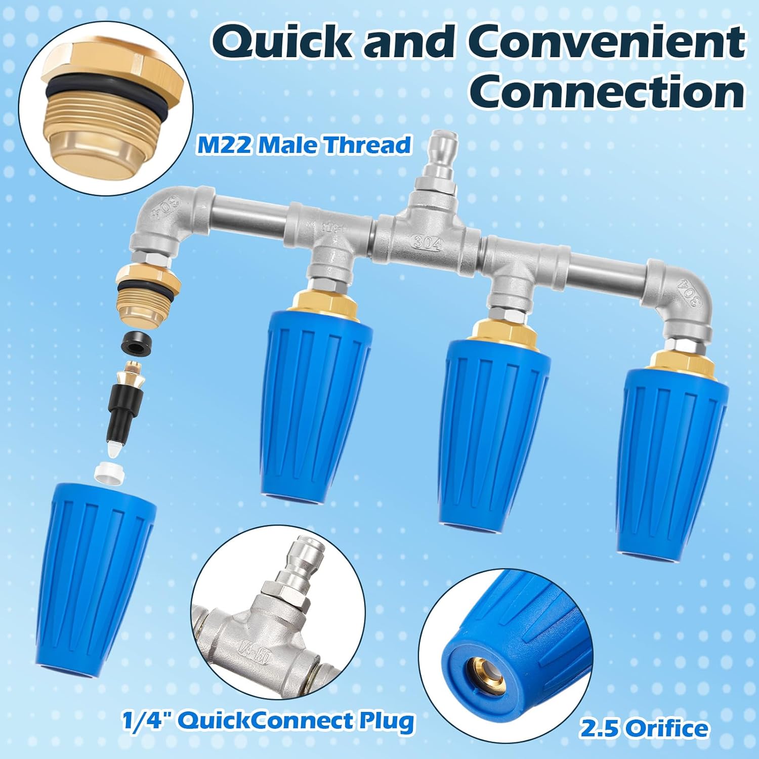 Features: Thanks to the aluminum copper plating, this turbo nozzle pressure washer is lighter than pure copper models, reducing fatigue during extended use. Its rust and corrosion-resistant properties ensure it remains a reliable tool for years to come. Packaged in a sleek blue design, this pressure washer turbo nozzle not only delivers performance but also adds a touch of style to your cleaning equipment. Compact and suitable, it's ready to become an essential part of your cleaning toolkit. Specifications: Material: aluminum copper plating Color: blue Size: suitable size Package includes: 1 x Turbo nozzle pressure washer Notes: Manual measurement, please allow slight errors on size. The color may exist a slight difference due to different screen displays
