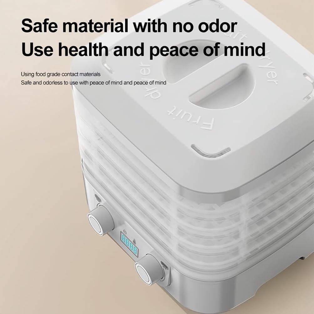 Introducing the Home Food Freeze Dryer, your ultimate solution for preserving a variety of foods at home. This 5-Tray Food Dehydrator is perfect for anyone looking to extend the shelf life of meats, fruits, and vegetables without compromising on flavor or nutrients. With adjustable timer settings ranging from 1 to 48 hours and a temperature control feature between 35°C to 75°C, you can tailor the drying process to suit different types of food, ensuring optimal results every time. Whether you're preparing snacks for a family hike, creating healthy meal prep options, or stocking up for emergencies, this dehydrator is designed to meet your needs. The Home Food Freeze Dryer is made from durable PP material, ensuring longevity and reliability in your food preservation efforts. Its compact dimensions (25.3 x 24 x 22 cm) make it easy to fit in any kitchen space while still offering ample capacity with its five trays. Choose from elegant color options like White and Blue to match your kitchen aesthetic. This appliance is not just functional; it adds value to your lifestyle by promoting healthier eating habits and reducing food waste. Imagine enjoying your favorite seasonal fruits and vegetables year-round or having homemade jerky ready for your next adventure. Invest in the Home Food Freeze Dryer today, and experience the convenience of preserving food at home while enjoying the benefits of nutritious, delicious snacks anytime you want. **Packing List:** - 1 Food Freeze Dryer **Note:** Slight measurement discrepancies may occur, and color variations can happen due to different screen displays. Thank you for considering our product!