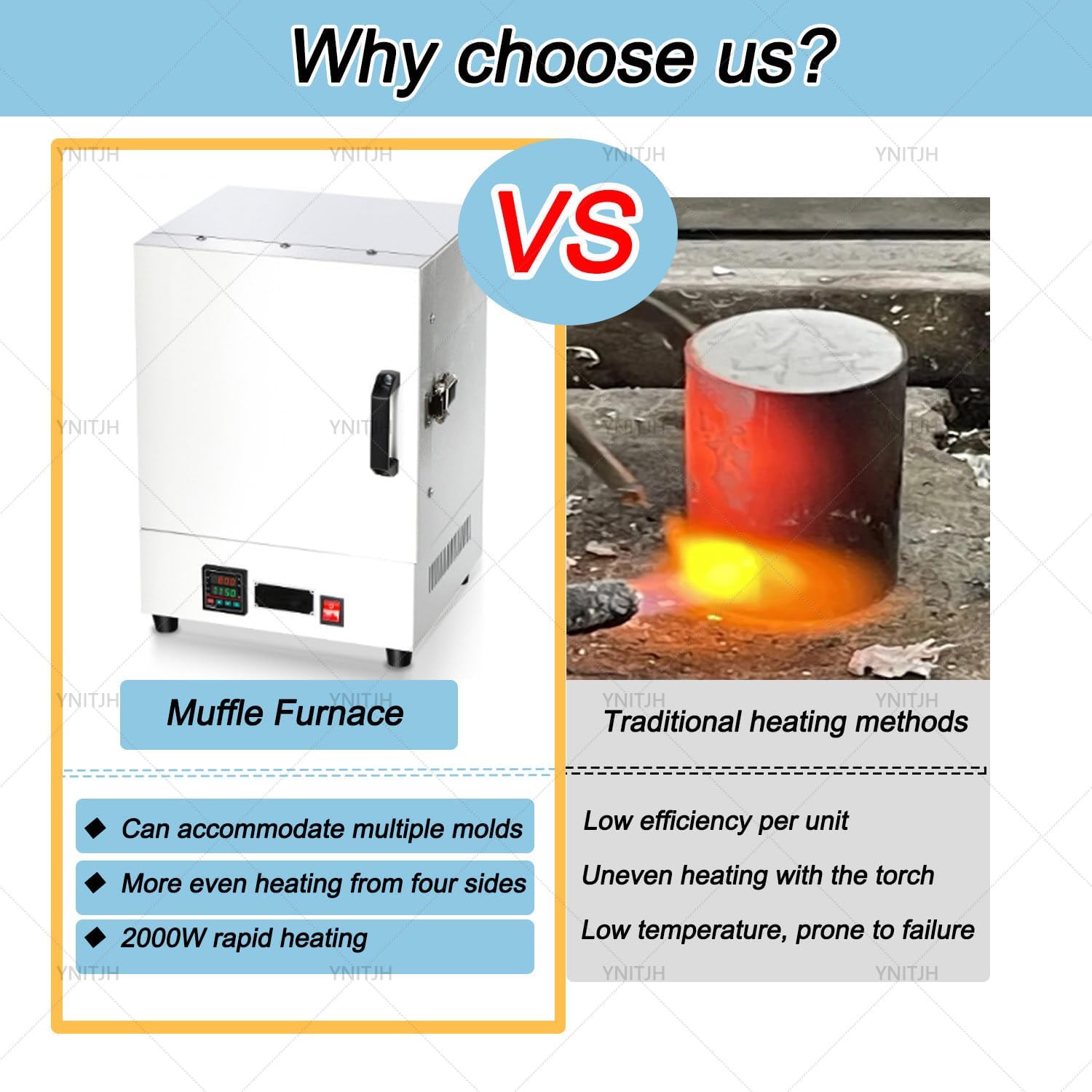 Worried that the oven cavity is too small for your batch production needs? The spacious interior of 16 x 16 x 13.7 cm allows you to easily accommodate multiple plaster molds, for continuous production in small batches. Lab Muffle Furnaces, Jewelry Casting Furnaces, Plaster Mold Baking Furnaces and Constant Temperature Furnaces all use unique four-sided heating design to ensure uniform temperature inside the furnace, stabilizing the heating of plaster molds and improving the casting success rate. Product Features: Unique heating technology wraps around four sides for more even heat distribution. Precise temperature control (0-1150℃), smart display screen. 2000W high power heating element with reinforced heating cable for rapid temperature rise. Unique waterproof door effectively reduces heat loss. Internal Oven Size: 16 x 16 x 13.7 cm Large capacity: allows you to heat multiple plaster molds simultaneously. Product Specifications: Name: Lab Muffle Furnace Colour: white. Power: 2000W Temperature range: 0 to 1150 °C Temperature accuracy: ± 1°C Display Accuracy: 1°C Heating speed: ≤ 100℃/min Oven dimensions: 16 × 16 × 13.7 cm Package size: 30 × 27 × 42 cm Weight: 15.5 kg Package includes: 1 × Lab Muffle Furnace. Customer Service: Any questions about our products, please feel free to contact us. We will reply you within 24 hours.