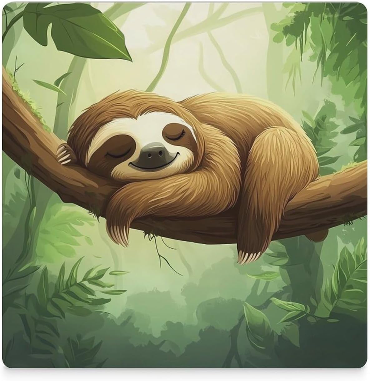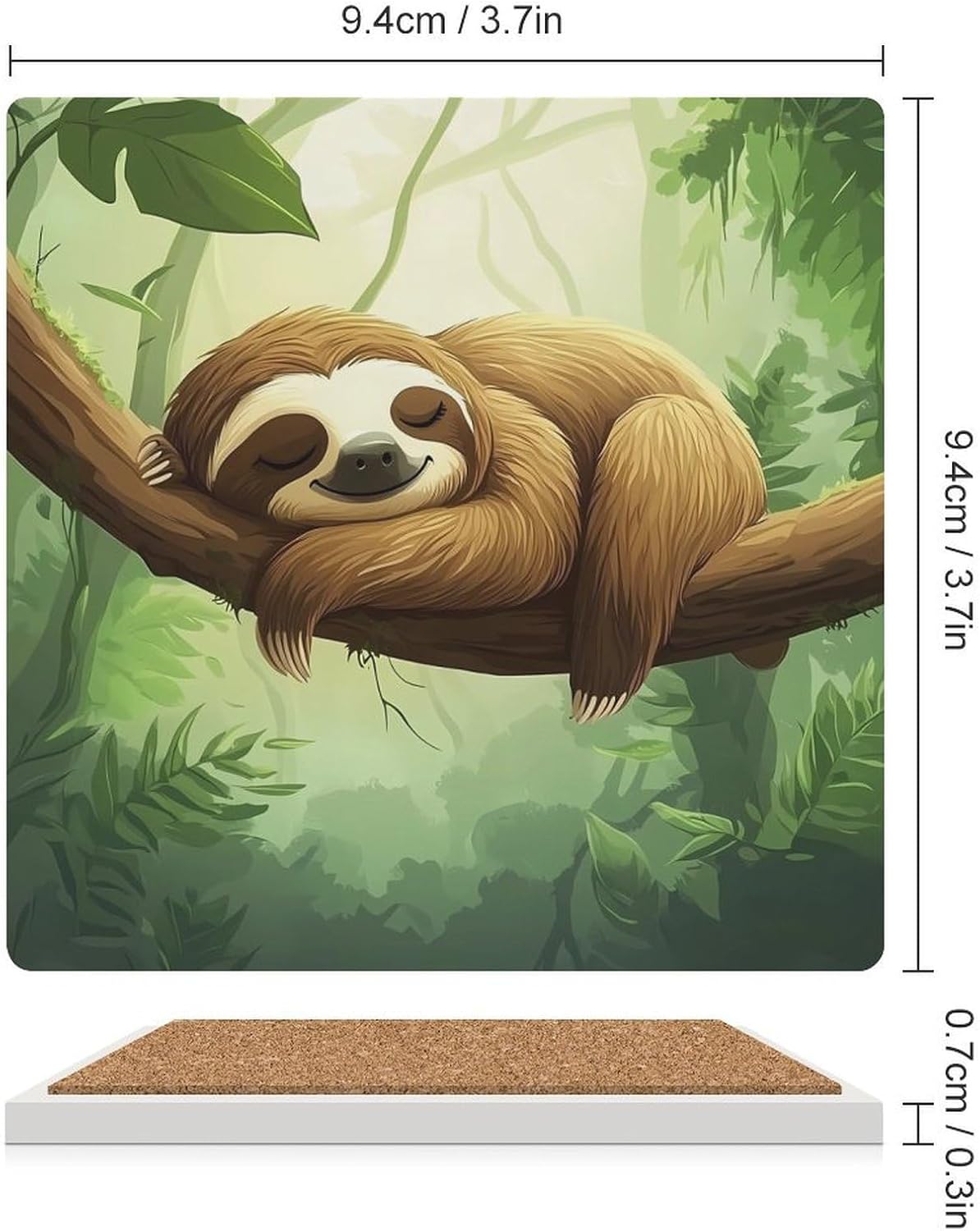 Animal Sloth Ceramic Coasters Set Square Drink Coasters Table Coaster for Kitchen Desktop Decor