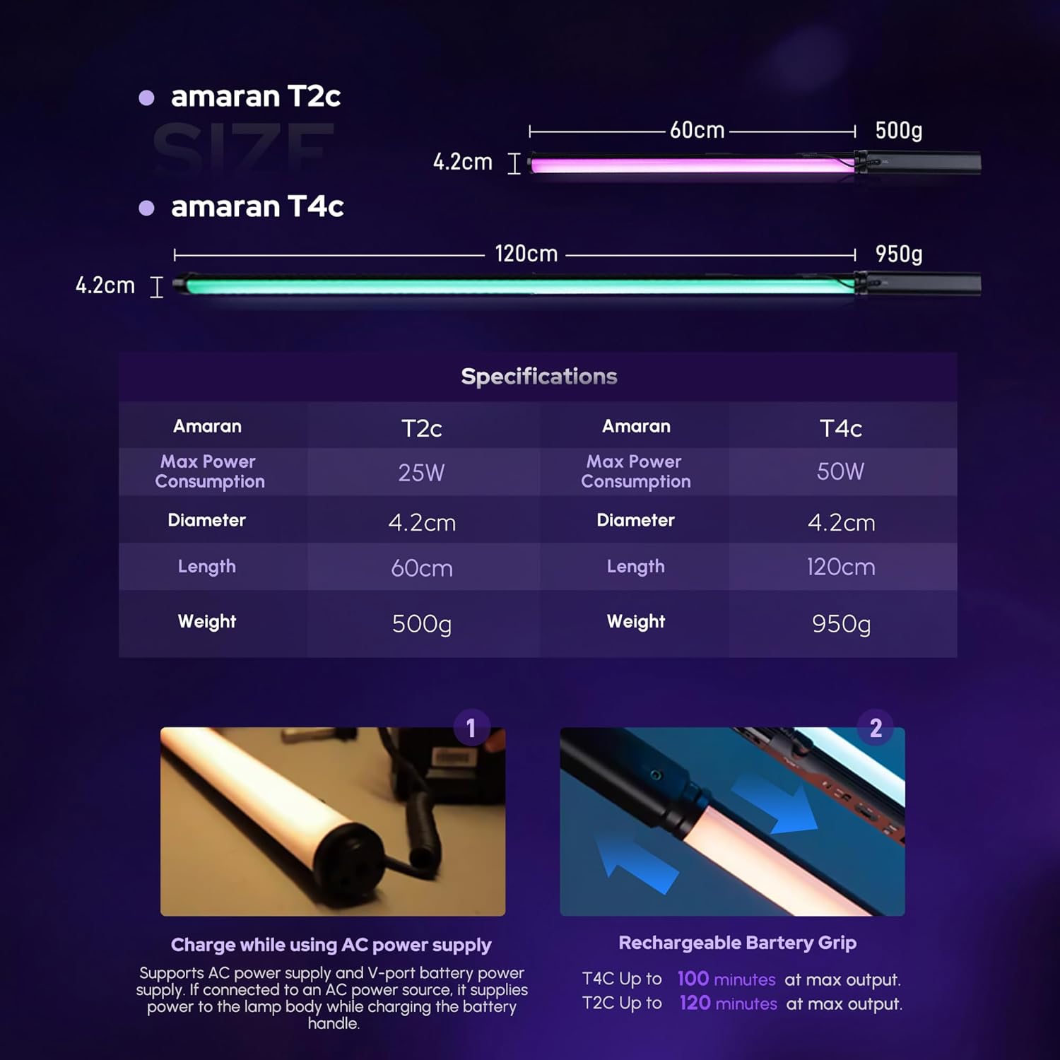 | Included Components | 3/8"-16 Eyeboltx1, Amaran T2C TUBE LIGHT x1, Battery handle x1, Carrying bag x1, Power adptor and cable x1 |