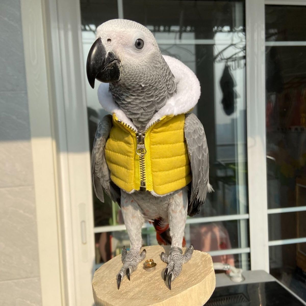Product name:Bird Clothes Color:Yellow Size Chart: XL:Caique,Necked Parakeet,Hahn's Macaw,Senegal 2XL:African Grey,Eclectus,Amazon Macaw Sulphur-crested Cockatoo Pls check the size before you buy it. Packing:1*Bird Clothe