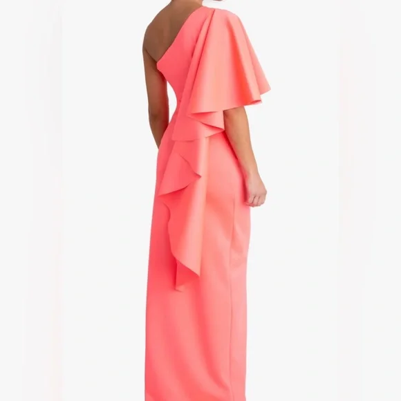Black HaloOdella Asymmetric Draped Neoprene GownThe Odella gown by Black Halo is crafted of neoprene. Featuring a one-shoulder neck, this elegant style features a cascading draped shoulder accent that sways as you walk.One-shoulderSingle-short sleeveZip back90% polyamide/10% elastaneLining: 96% polyamide/4% elastane; fullDry cleanMade in the USASIZE & FITAbout 64" from shoulder to hem