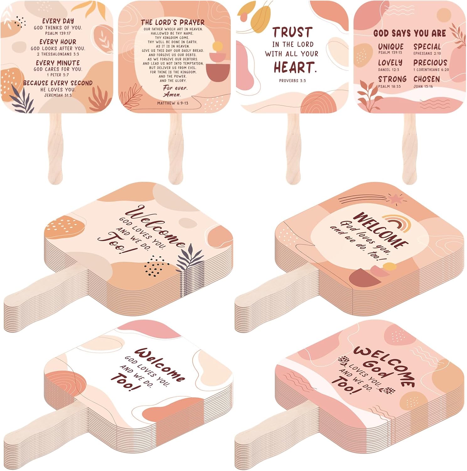 Features: Introducing our Christian paper fans pack, designed to inspire and uplift, these fans combine style, function, and faith in one bundle. These floral bible fans are more than accessories. They serve as unique church presents for women. Each fan features a Christian floral element design, the nice blend of artistic elegance and deep rooted religious symbolism. Crafted with vibrant colors and smooth writing of inspiring Bible verses, these religious fans cultivate positivity while encouraging strength in facing life's hurdles. Versatile, our Christian bible fans have wide applications. They are suitable for church services, religious activities, and public events, bringing an aesthetic touch while spreading positivity. As bible verse fans, they serve as touching prayer fans for women. Give them as gifts to women, mothers, girls, friends, and family. Inspire faith and positivity with these Christian floral fans for women, while ensuring that everyone stays cool in style. Specifications: Quantity: 60 pieces Material: paper, wood Color: multicolor Size: (about) 7.87 x 7.87 inches/ 20 x 20 cm Package includes: 60 x Christian fans bulk Notes: Manual measurement, please allow slight errors on size. Due to the screen display, the color of the item may differ slightly from the picture.
