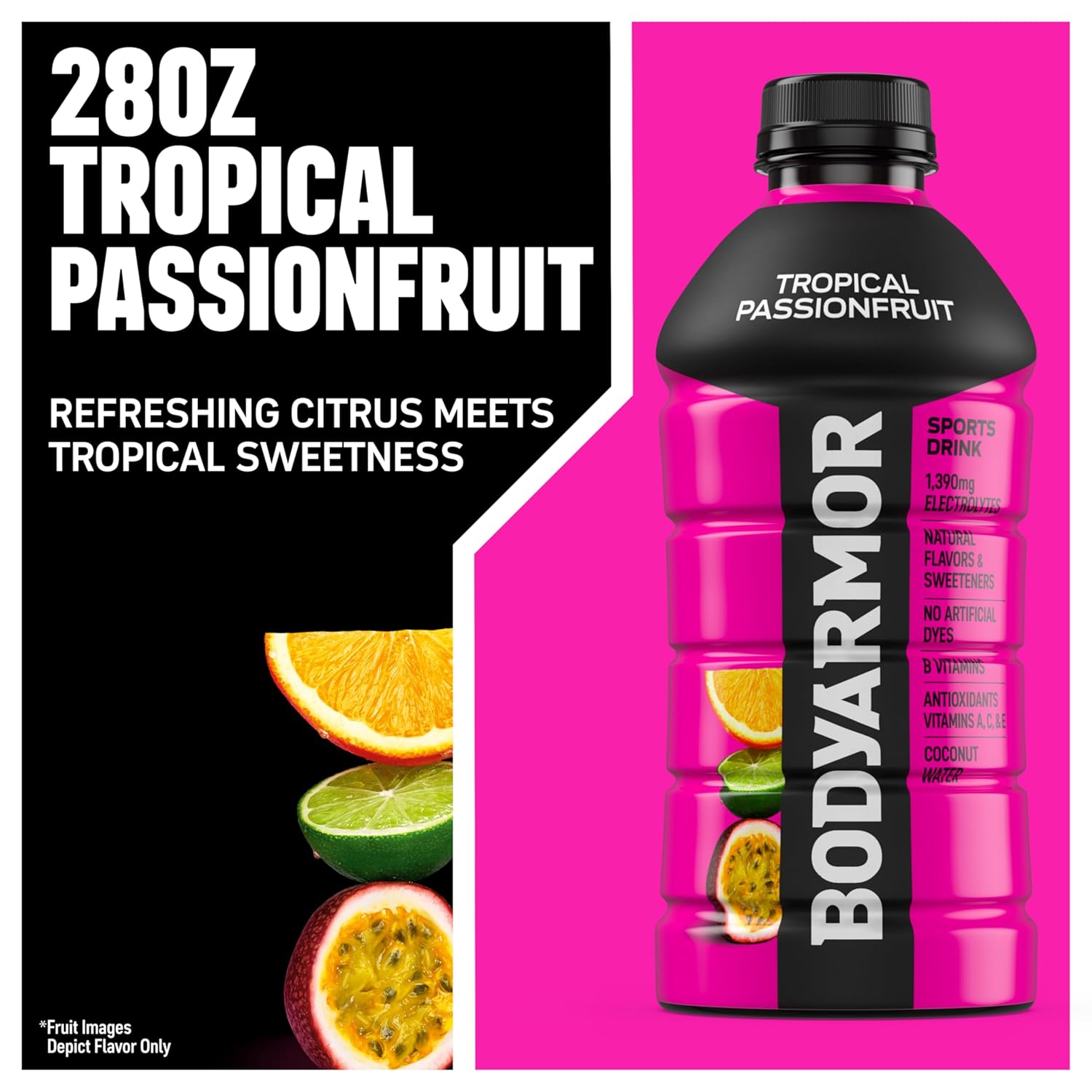BODYARMOR Sports Drink, Tropical Passionfruit, Electrolyte Drink Hydration, 28 Fl Oz Bottles (15 Pack), Flavored Coconut Water with B Vitamins & Antioxidants