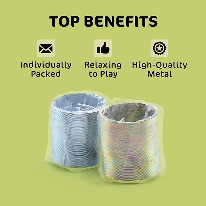 Unleash a wave of mesmerizing fun with our Metal Slinky Coil Spring Pack Of 2 a delightful set of 1.5-inch gold metal coil springs perfect for a myriad of occasions. This collection serves as a fantastic birthday party favor, a cute coil spring prize, goody bag fillers, novelty gift, walking spring toy, and engaging fidget toys.