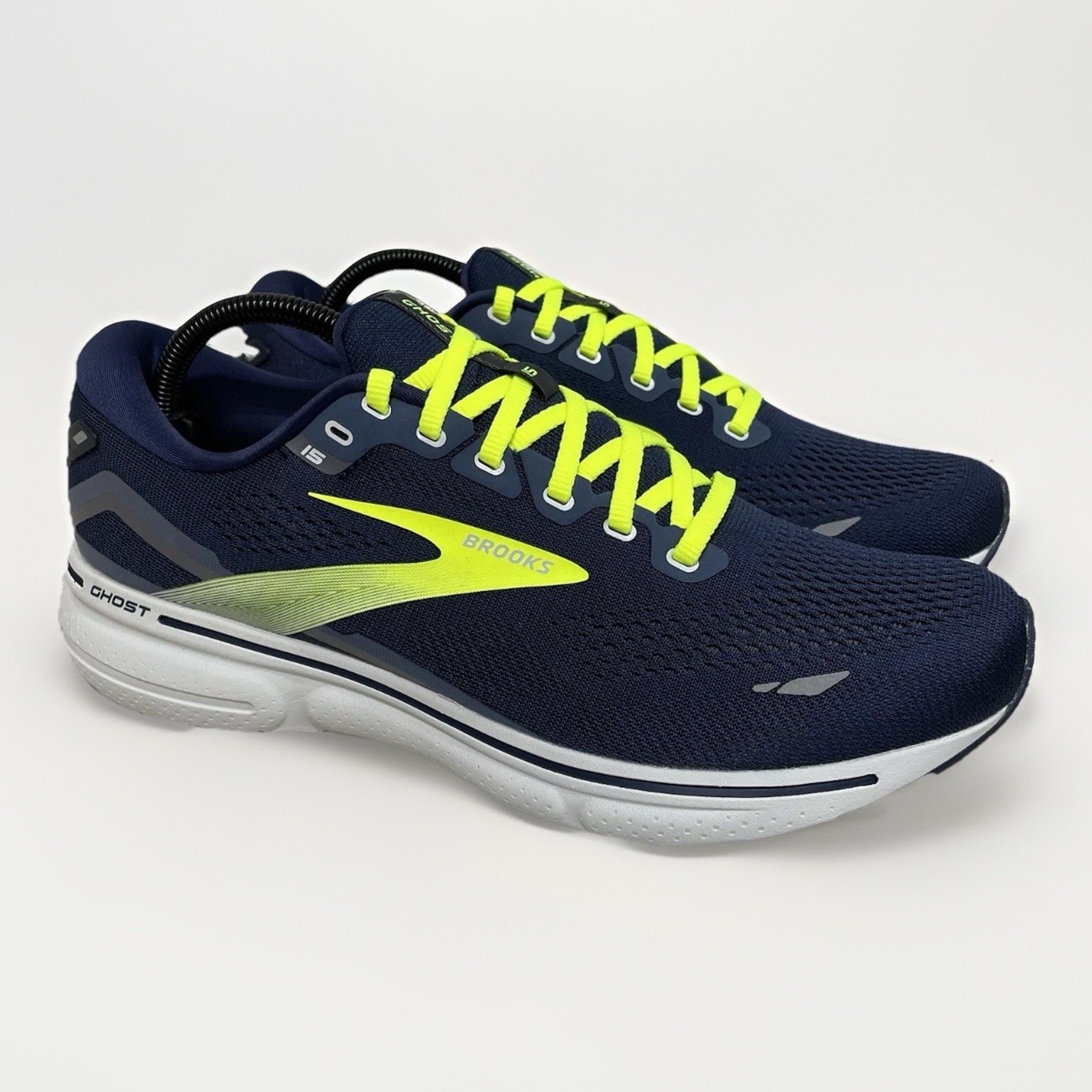 The Brooks Ghost 15 Men's Blue Running Shoes in Peacoat Nightlife are designed for high-performance athletic activities such as running and jogging. Featuring a low-top shoe shaft style with a lace-up closure, these sneakers offer a comfortable and breathable fit. The solid blue color with the signature "Ghost" character is a stylish addition for both activewear and casual occasions. Made with cushioned and comfortable features, these Brooks Ghost 15 shoes are ideal for gym training, walking, and various outdoor activities during the spring, summer, and fall seasons.