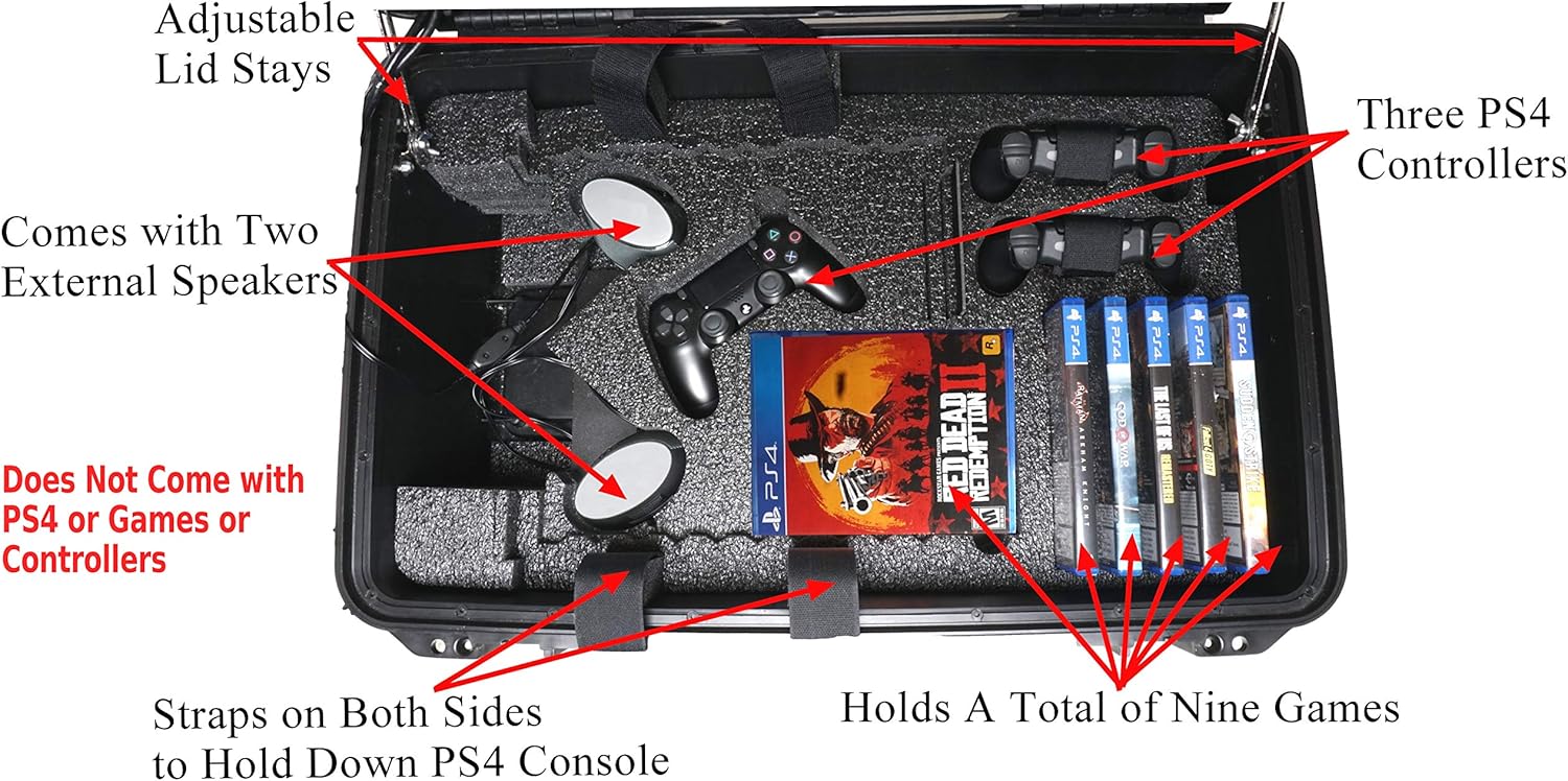 Case Club is proud to introduce the 24″ monitor Gaming Station for PS4 Gaming consoles. We took special care in engineering the features that this case has to offer. From the adjustable lid stays to the easy game and controller access, the case has it all. Case Club’s goal is to be efficient and also user friendly in what we engineer, and this Gaming Station will protect your valuable equipment, withstanding incredible abuse in extremely harsh environments. Designed for style as well as durability, the Case is molded from tough polypropylene and is both rugged & lightweight. A Perimeter O-Ring helps keep out the elements, protecting the contents from water, dust and other contaminants. The Case Club PlayStation 4 Portable Gaming Station Case will not chip, dent, or lose its finish.