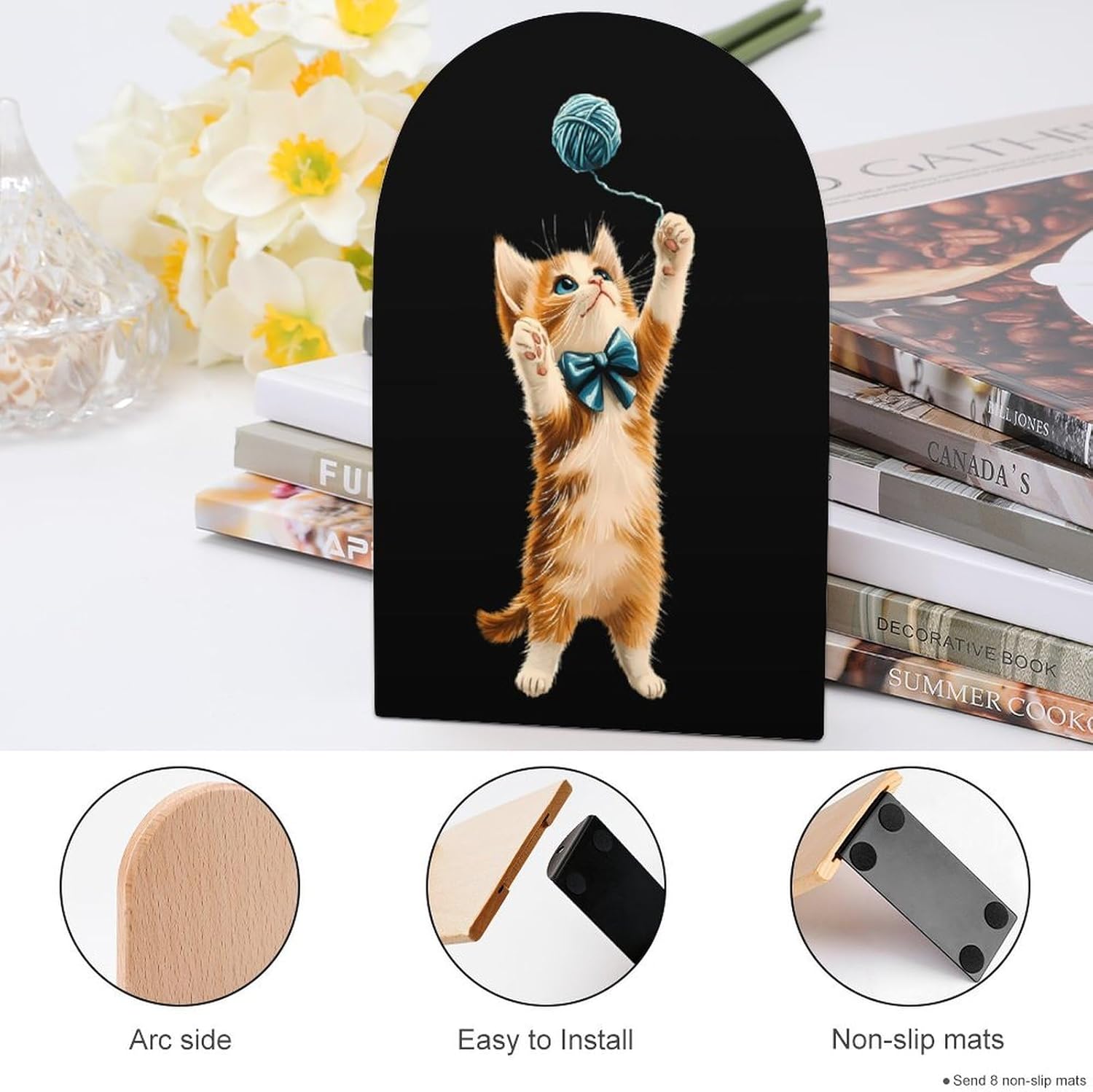 Custom Bookend Wood Book Ends for Shelves Cute Book Shelf Holder Home Decorative,the book end protect your bookshelf or furniture from scratching when you move the bookends