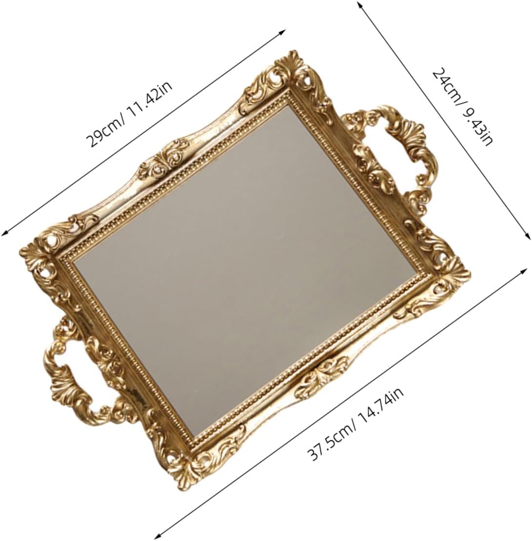 Package Include 1 x tray Characteristics - Color: golden serving. - Material: resin and glass mirror rolling. - Size: About 3680X2300X500cm/1449X906X197inch Make-up Mirror - Great for displaying cake, dessert, fruit, candy, chocolate, pastry and more large. - and glass and resin material, it is and to use retro decor. - for wedding party, home, office, hotel and so on, etc Wedding Storage Tray. - With fine craftsmanship, looks beautiful and elegant, a nice decor for your home golden. - Brand-new and great quality, good for you to store small items like some cosmetics and small jewelries green.Goods DescriptionDelicate Mirror Plate This Nordic style retro mirror tray can hold many small things such as keys, fruit, perfume, cosmetics and so on.photo holders Made of resin and glass material, and .vanities for makeup Do you want to have an storage mirror tray? If yes, our item is your a