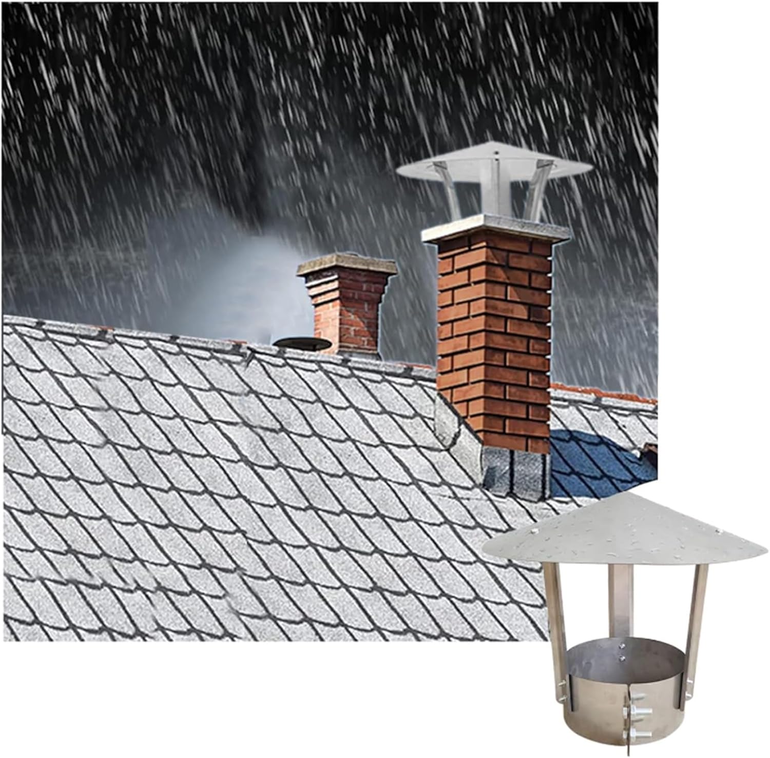 Key Features:-Adjustable hoop design: Easily adjust the size by lengthening the screw, effectively solving any size errors.-Large brim and increased hat label size: Enhance the rainproof effect and provide better protection against the elements.-Minimalist stainless steel design: Simple, beautiful, and practical.-Reinforced and clamp design: With a sturdy support frame, our chimney hood can withstand strong winds and rain.Product Details:- Material: Stainless steel- Thickness: 0.7mm- High temperature resistance: Up to 450°C- Welding process: Plasma welding- Protects against rain, snow, wind, and small animalsProduct Name: Chimney HoodProduct Size: Diameter 80-300mm (customizable)Measurement Methods for Pipe Size:1. Direct measurement: Measure the pipe dimensions, including wall thickness, to determine the size.2. Rope measurement: If it is difficult to directly measure the pipe diameter, wrap a rope around the pipe and measure its length.