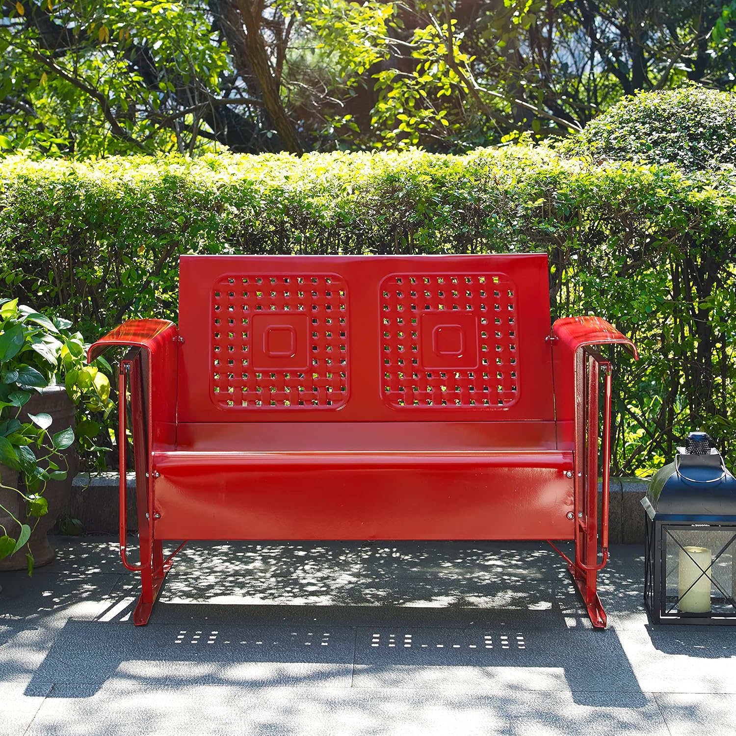 Glide back into lazy summer afternoons with the Bates Loveseat Glider. This vintage-style loveseat comes in a variety of vibrant colors, offering a fun outdoor lounging experience. The back features a unique basket weave design that allows air to circulate, and the base has a smooth gliding mechanism for relaxing in comfort. Made of durable steel, this glider has a powder-coated finish that resists rust and sun fade. The Bates Loveseat Glider is sure to add a dash of retro fun to your porch or patio.