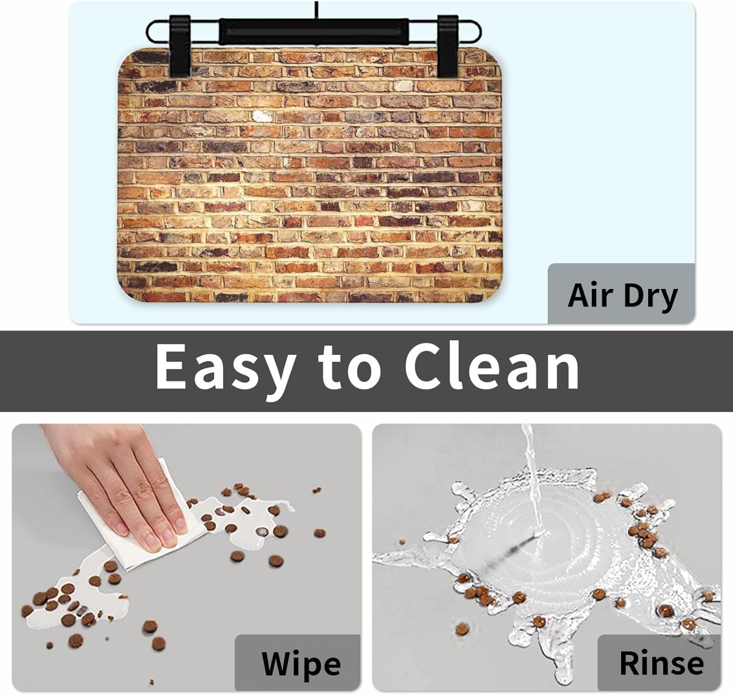 Give Your Pet A Clean, Stylish Dining Space While Protecting Your Floors With Our Advanced Absorbent Leather Pet Feeding Mat.Engineered For Pet Owners Who Value Both Function And Cleanliness, This Mat Tackles The Common Messes Of Feeding Time. The Top Layer Is Made Of High-Quality, Absorbent Pu Leather That Acts Like A Sponge, Instantly Soaking Up Spilled Water, Dribbles, And Food. This Quick-Dry Pet Feeding Pad Then Dries Rapidly, Helping To Prevent Bacterial Growth And Keeping Your Pet'S Paws Dry. Say Goodbye To Puddles And Wet Patches Around The Bowl Area.Floor ProtectionThe Entire Bottom Of This Non-Slip Dog Bowl Mat Is Covered With A Grippy Rubber Material That Locks The Mat Firmly To Tile, Wood, Or Laminate Flooring. No More Sliding Or Chasing The Mat Around The Kitchen! More Importantly, The Waterproof Rubber Base Creates A Complete Barrier. It Contains All Liquids, Shielding Your Floors From Potential Water, And Scratches Caused By Ceramic Or Metal Bowls.Remarkably Easy To MaintainFor Daily Upkeep, Just Wipe It Down. For A Deeper Clean, You Can Wash It With Water And Mild Soap. Its Durable Construction Ensures It Holds Up Perfectly Through Many Washes, Maintaining Its Look And Function.Versatile And Pet-Friendly DesignThis Versatile Mat Is Designed For All Your Pets' Needs. It Serves Perfectly As A Cat Water Fountain Pad To Catch Splashes, A Dog Food Catcher Mat For Messy Eaters, Or A Stable Base For Automatic Feeders And Waterers. Available In 2 Generous Sizes To Accommodate Different Bowl Setups And Pet Sizes.Convenient For Every LifestyleWhen Mealtime Is Over, Simply Roll Up The Mat For Neat And Space-Saving Storage. Its Lightweight And Flexible Design Also Makes It Perfect To Take Along On Trips Or Visits. Durable, Functional, And Thoughtfully Designed, This Mat Is The Ultimate Solution For A Cleaner, More Organized Pet Feeding Routine.