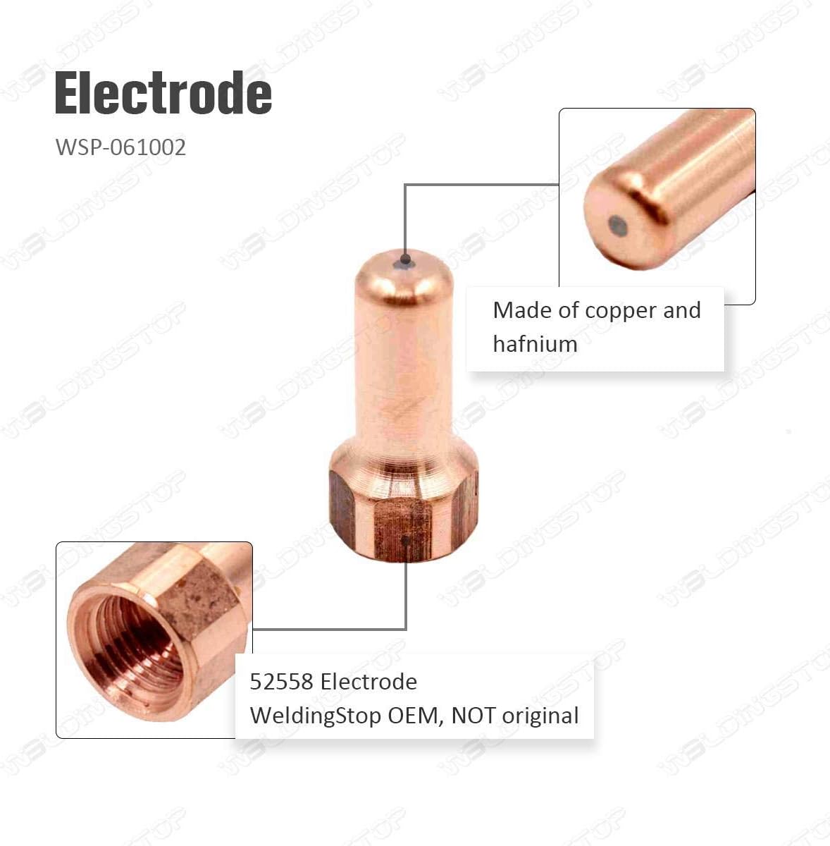 Product Description:Torch model:Fit PT80 PT-80 IPT-80 Plasma Cutting TorchReference Number: 52558 51311.12Item Package Quantity: 20 piecesConsumables type:Plasma Cutting Electrode NozzleList IncludedPlasma torch electrode Ref:52558 WSP-061002 10pcsPlasma torch nozzle Ref:51311.12 WSP-061004 10pcsInstruction for usePlasma Cutter Consumables PT80 PT-80 IPT-80 Electrode 52558 Tip 51311.12 Pkg20Attention:This product is not originalPlease Make Sure if the REF code matchesIf you are uncertain about compatibility of parts please contact us first