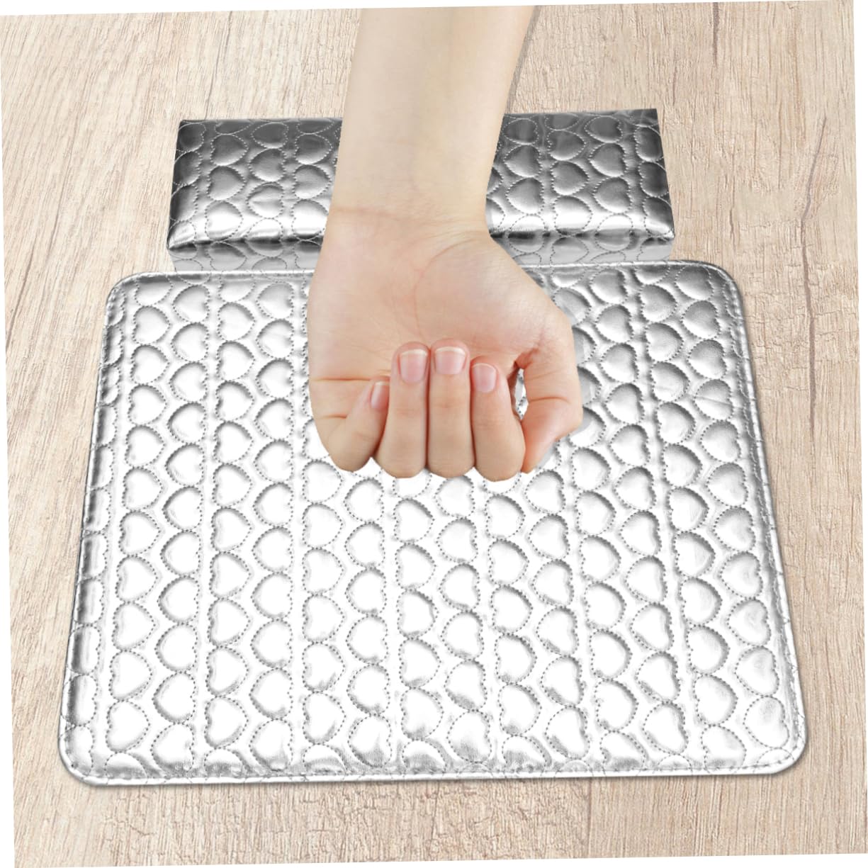 Package Include 1 x hand pillow 1 x hand pad Characteristics - Size: 37.2 x 29.2cm/ 14.65 x 11.5inch(pad), 29.2 x 12.8cm/ 11.5 x 5.04inch hand pillow. - Color: Silver wrist cushion. - Material: PU leather and sponge. - Suitable for beginners and professional salon wrist pad. - Made of PU leather and sponse inside, use wet dishcloth for daily clean Nail Salon Cushion. - A match to your salon decoration. Great for nail art lovers and pro-users nail cushion. - Can your counter the filing and manicure products, while have your clients to steady hands during their . - It is and firm to steadily your wrist, fitting manicuring table.Goods InformationNail Salon Cushion Keeping your wrist the cold board, this wrist cushion set can make your arm feel better after painting your nails for a long time, and make you enjoy manicure process.hand pillow A wrist cushion is needed to match your nail table.wrist pad They will be very happy.wrist cushion A great your friends and families