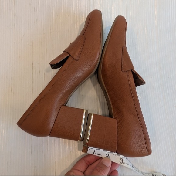 FRANCO SARTO Romf Brown Leather Block Heel Penny Loafers