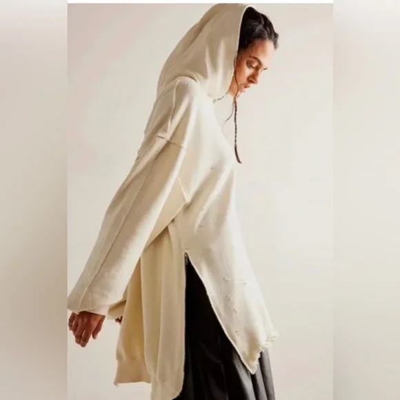 Add effortless edge to any style with this so cool hoodie featured in a slouchy, relaxed fit with worn detailing throughout and distressed bottom hem for a true lived-in look.Fit: Oversized, slouchy fitFeatures: Classic hood, distressed bottom hem, dropped shoulders, exaggerated side slitsWhy We <3 It: Designed to take your hoodie game up a notch, this effortlessly essential version is the perfect piece to add to absolutely any style, from season to season.Size + FitMeasurements for size smallSleeve Length: 23.5 inBust: 50 inLength: 23.5 inContentsCareMachine Wash ColdContents100% CottonRib Trim: 96% Cotton, 4% ElastaneOriginImport