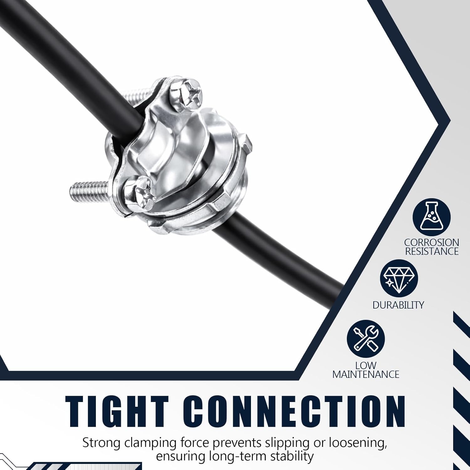 Features: These zinc alloy cable connectors resist rust and deformation, delivering reliable performance for residential/commercial electrical setups. Their tight clamp seal keeps cables secure, adding long-lasting wiring protection. This 100-pack of easy-to-install cable clamps fits standard electrical boxes. No special tools needed—ideal for DIYers home renovations, new builds, or wiring upgrades. Specifications: Material: zinc alloy Color: silver Size: 1/2 inch Package includes: 100 × steel cable connectors Notes: Manual measurement, please allow slight errors on size. The color may exist a slight difference due to different screen displays
