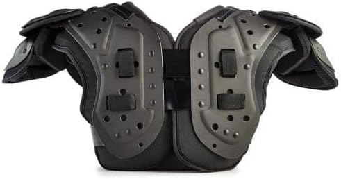 The Gear Pro-Tec X3 Adult X55 (OL/DL) Football Shoulder Pads provide a traditional pad design with the added benefit of the same Compressed Hex Foam used in the top-of-the-line Razor model. Compressed Hex Foam features 3D channel and perforations to promote air flow, moisture evaporation and cooling power while maintaining maximum protection. The AC notch-out with cradle pad provides additional AC joint protection. Features a fixed cap pad with Pro-Loc epaulet design while still allowing for maximum arms up motion. Vent holes in the arch allow for quicker cooling and faster drying. Matte black color provides a stealth appearance amid its traditional style but with the added benefits of modern technology for demanding performance. Features: Most protective X3 model offering greater coverage for blocking and tackling. Specially designed for larger players such as OL/DL/DE/TE positions. 1.5" Biothane belt with no-snag buckle. Secondary 1.5" elastic belt for more secure fit. Compressed Hex Foam delivers first in class moisture management and superior protection. Vent holes throughout arch offers increased air flow. Full 180-degree arms up motion. Integrated Deltoid Pad and fixed cap pad. Rigid plastic sternum protection.