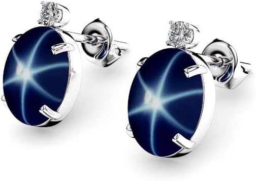 These stud earrings feature genuine blue star sapphires accented with white sapphires, all set in solid 925 sterling silver. The gemstones display a natural 6-ray star that floats across the surface under natural light, creating a refined and understated appearance. The classic design highlights the beauty of the gemstones while remaining elegant and suitable for both everyday wear and special occasions. The white sapphire accents add subtle brilliance without overpowering the center stones. Each pair of earrings is handcrafted in our small family jewelry workshop in the USA using traditional jewelry-making techniques, ensuring careful attention to detail and lasting quality.