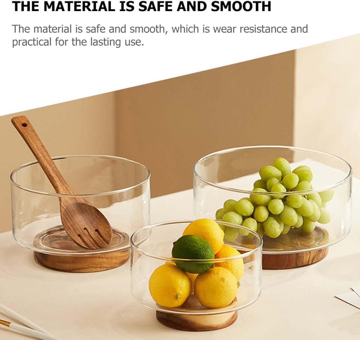 Package Include 1 x Large Glass Bowl 1 x 1 x Fork Features - Material: Glass, wood - Color: Assorted Color - Note: The product has color differences - Fork Size: 26.50X7.00X0.50cm/10.41X2.75X0.20in - Size: 27.00X7.00X0.50cm/10.61X2.75X0.20in -Product Info:Glass fruit tray - Bowl Size: 17.50X17.50X11.00cm/6.88X6.88X4.32in - Capacity: About 1700ml glass fruit holder - Reasonable design, clear appearance, smooth and delicate. to family and friends glass salad serving bowl - Ideal choice for your family and friends as a housewarming , they must like it fruit bowl - The material is safe and smooth, which is wear resistance and practical for the lasting use. - Provides a sturdy foundation for the large salad serving bowl, protects your table surface from dessert bowls glass - Perfect for using to store salad, dessert, , fruits, candy and other treats clear fruit bowlGoods Descriptiondessert bowls glass Widely used for home, party, home, shops and more, which will give you pleasant experience.glass fruit bowls With unique and chic design, this large salad bowl could be used for holding cake, snack, foods, tea cake and others