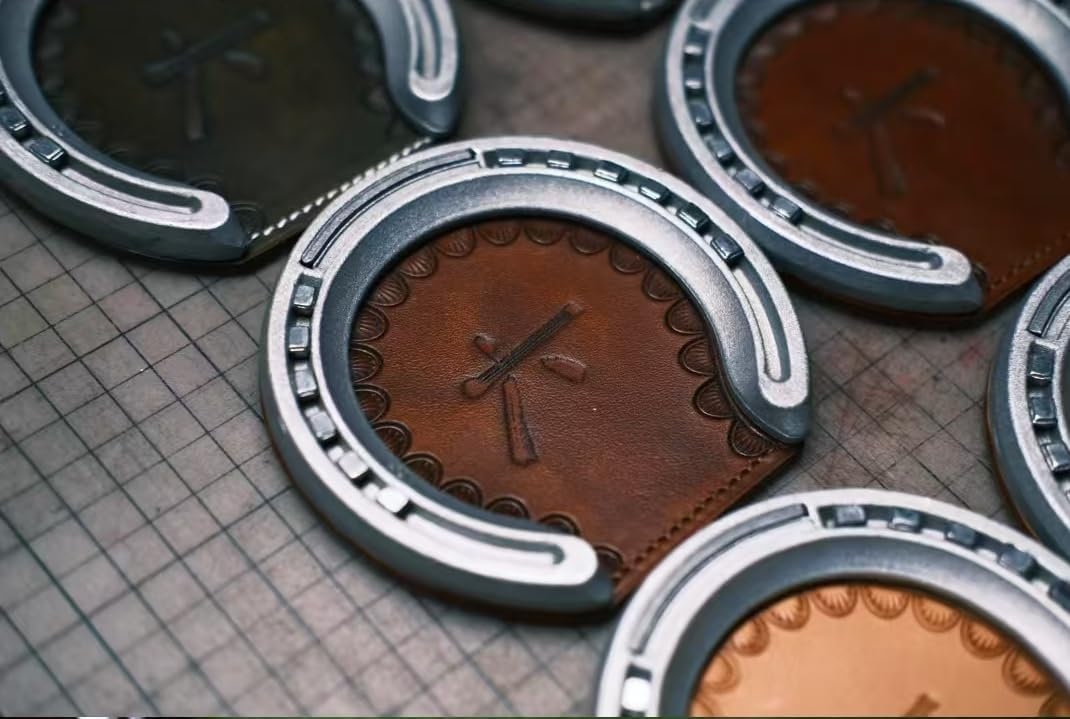 Add a touch of rustic charm to your home with this premium Yellowstone Dutton Ranch leather coaster. Featuring an iconic horseshoe design and elegant scalloped border, this coaster perfectly captures the spirit of the American West. The durable leather construction not only protects your surfaces from water rings and condensation but also develops a beautiful patina over time, making each piece uniquely yours. The classic black horseshoe frame contrasts beautifully with the rich brown leather center, which is expertly embossed with the Dutton Ranch branding. These coasters make excellent conversation pieces for your living room, home bar, or entertainment area, while providing practical protection for your furniture. Whether you're a fan of Western decor or simply appreciate quality craftsmanship, these coasters blend functionality with authentic ranch style. Each coaster serves as both a practical household item and a distinctive piece of Western-inspired decor that's sure to draw admiring glances from your guests.
