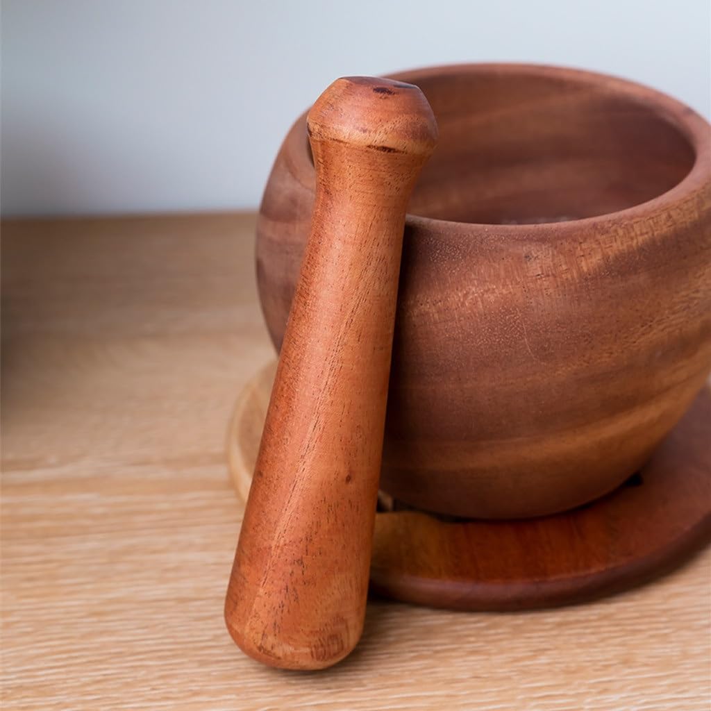 Professional kitchen garlic buckle pot bottom seat bowl mortar and pestle setUse a portable design and easy and safe useSolid garlic percussion stick, strong and , comfortable gripDeepened, thickened barrel body, which is comfortably handled and easily groundEasy to clean and does not cause the grinder to retain the original spice flavorMaterial: woodDimensions: 13.5*3.5cmPackaging: 1 garlic processorCompact design takes up little space in your kitchen, and makes a great gift for new cooks to master chefs
