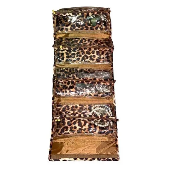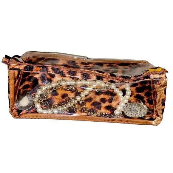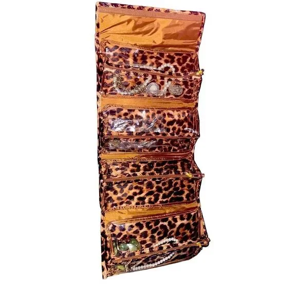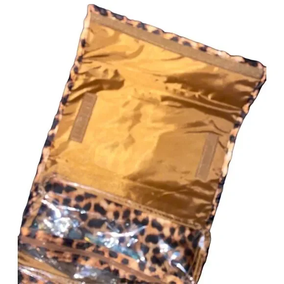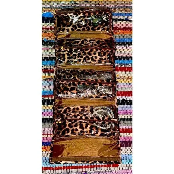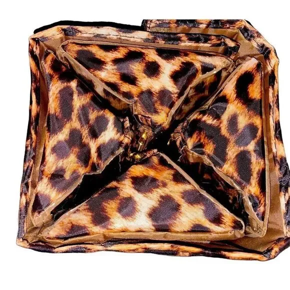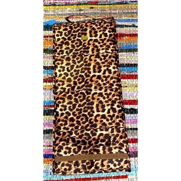 Indulge in the epitome of luxury travel with the Leopard Nylon Travel Four Compartment Train Bag by Joy Mangano. Its iconic design boasts a removable four-compartment Velcro system, allowing for unparalleled organization with ease. Crafted from lightweight material, this sophisticated bag offers tons of storage space while exuding a contemporary chic vibe that effortlessly elevates your travel ensemble. Allow yourself to bask in opulence and practicality with this meticulously designed train bag, a true emblem of sophistication and style.Brand new!! Excellent Condition. Jewelry not included…Measurements… 8X11X7”Handle length 7” drop 3”Total length flat 27”Easy to cleanMulti Purpose Collector’s Item… no longer available