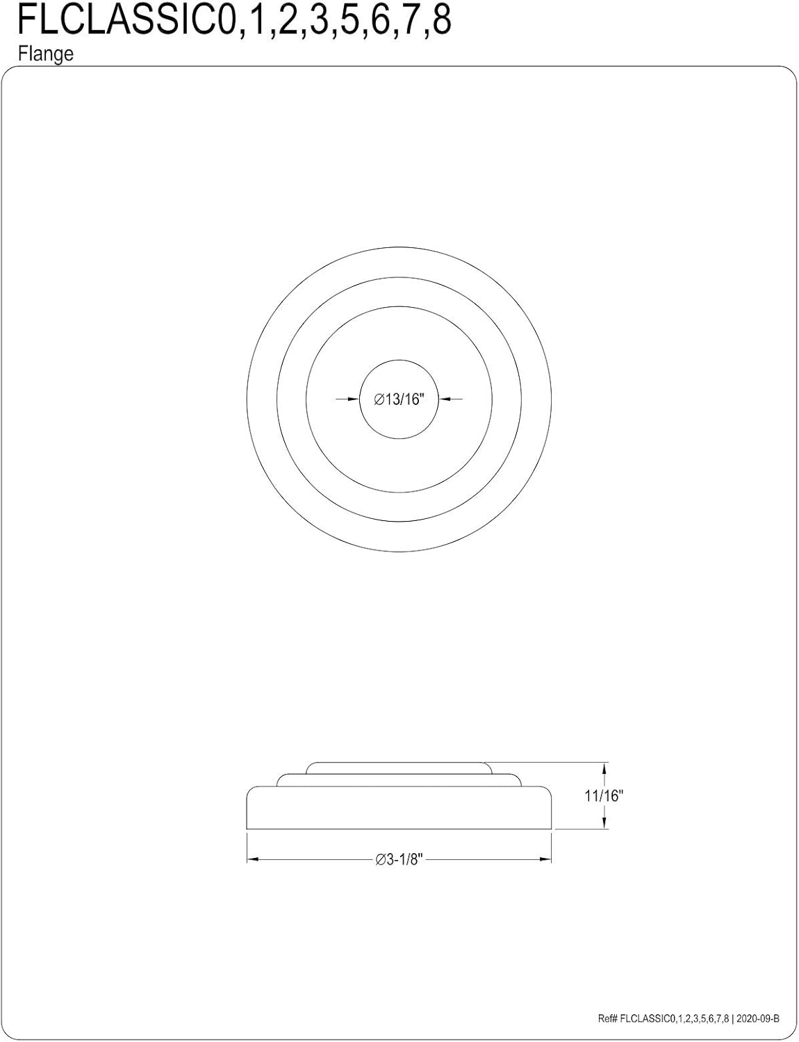 This Kingston Brass Made to Match Escutcheon has an overall diameter of 3-⅛”, a height of 11/16” from the wall to the face of the flange, and an inside opening diameter of ¾” to accommodate a number of fittings and fixtures including supply lines, angle stops, and shower arms. The tiered design adds a touch of refined classic styling to an often overlooked detail. The round flange is made of high quality solid brass to ensure durability and resistance to corrosion and wear.
