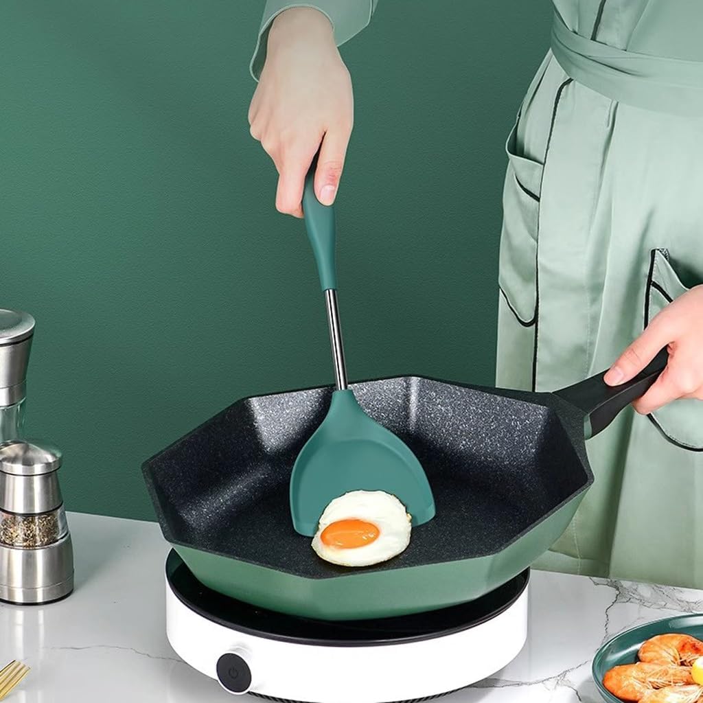 Occasionally getting oil can be done by lightly rinsing with water.Comfortable grip, stir frying is lightweight and fits well with the palm of the hand.High temperature resistant material, can withstand use in high temperatures, and has no odor when cooked.A non stick pot is a good helper for cooking without damaging the pot.Anti scald handle hanging hole storage.Name: Kitchenware SetMaterial: SiliconeColor: As shown in the pictureNumber of pieces: 6Specification: Kitchenware set * 11. Due to screen display differences, there may be slight color differences in the visual system. Please refer to the product received.2. Manual measurement may have slight errors, please understand.