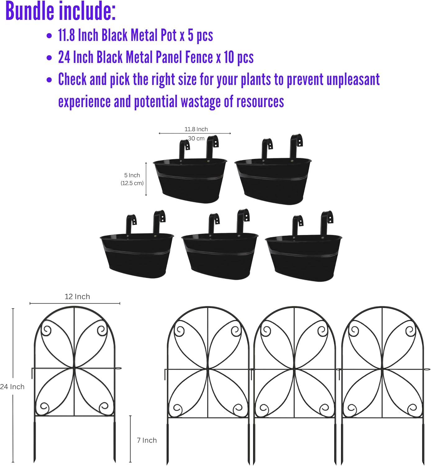 | Product Style | Bundle- 11.8" Rounded Metal Pot + 24" Garden Fence |