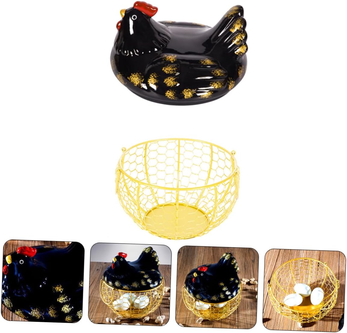 Package Include 1 x egg cage Features - Color: Golden, Black. - Material: Ceramics, Iron. - Size: About 22.00X19.50X19.50cm/8.65X7.66X7.66inch. -Product Info:Iron egg cage - This storage basket can help you keep a neat and orderly kitchen small egg basket. - Perfect for home, restaurant, buffet, hotel, party and more egg storage for kitchen. - Made of ceramic, iron, very and reliable for a long period eggs collecting basket. - It is not only a storage basket, but also a desktop ornament egg basket. - It can help keep your kitchen countertop tidy and save space egg gathering basket.Goods Descriptionegg holders Simple appearance, smooth and rounded edges, comfortable hand feel.egg display tray This is a storage basket for storing fruits, vegetables, food and more.egg basket It can also be used as an egg storage basket.egg holder storage for kitchen Fine craftsmanship, not easy to deform or break, to use