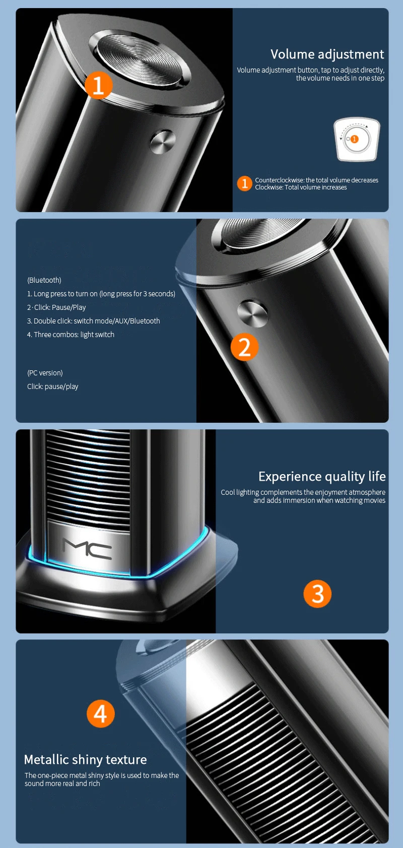 1.Steady and lossless bass sound effect and stereo surrounding sound loudspeakers bring you wonderful music.