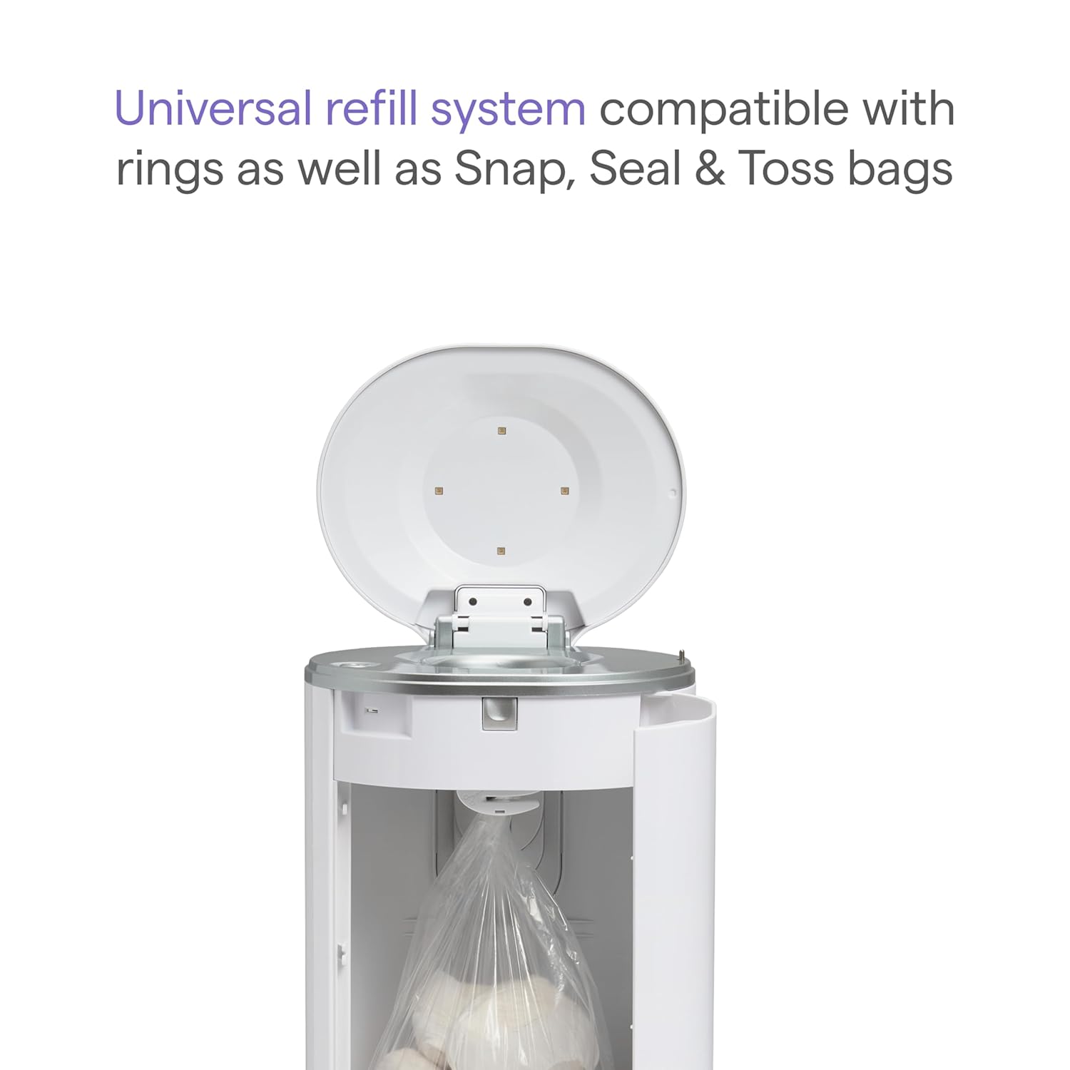 | Included Components | 1 UV Diaper Pail, 1 USB cable & adapter, 1 UV Refill Ring and 1 UV Snap, Seal & Toss™ Bag |