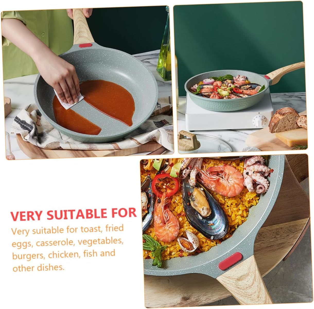 Package List 1 x pan 1 Characteristics - Color: Green Cooking Supplies. - Material: Aluminum, glass Omelette Pan. - for frying, cooking, baking, grilling, and more Soup Pan. - Non-stick pan, adapted to gas stove, induction cooker universal Breakfast Pan. - Made of material, you can keep it for a long term Pancake Pan. - Our saucepan use a special process, more convenient to clean, save time, let you fall in with cooking Home Fry Pan. - for making BBQ, fried potatoes, scrambled , , steaks etc Non-stick Pan.Goods InformationMaifan Stone Frying Pan It is very practical.Frying Pan Our non-stick frying pan to fit your everyday cooking needs.Flat Bottom Frying Pan for home.Omelette Pan It can use as a nonstick frying pans,and it also can use as a wok.Home Fry Pan You can cook vegetables or meat, fry , fry beef steak, fry toast and so on