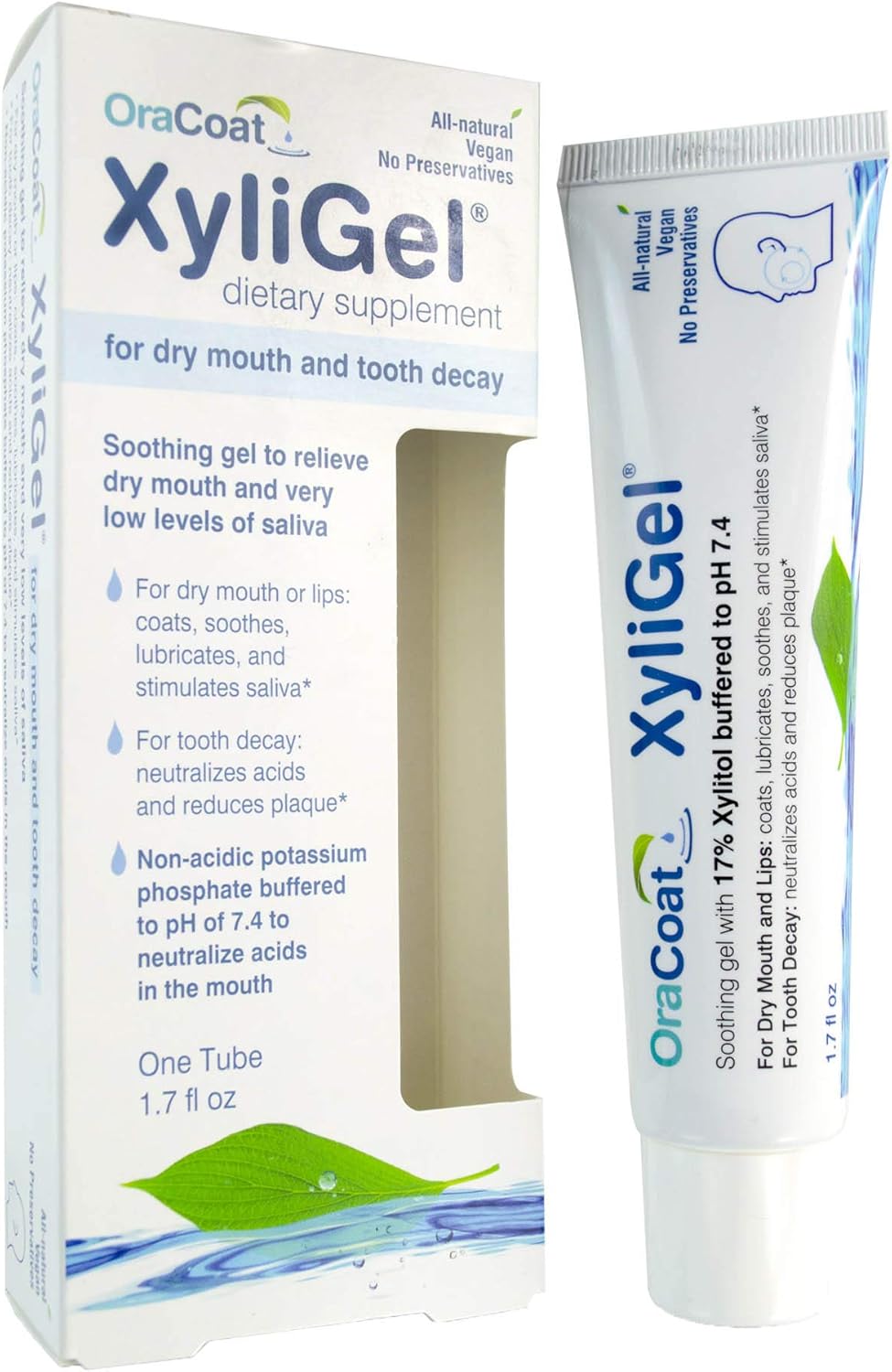 Oracoat XyliGel soothing dry mouth relief Gel is an all-natural, soothing gel that stimulates saliva production while lubricating the mouth to relieve dry mouth symptoms. Oracoat XyliGel soothing dry mouth relief Gel can be used day or night and can last 4-8 hours between applications depending on saliva production (individual results may vary). Oracoat XyliGel soothing dry mouth relief Gel Features non-acidic Potassium Phosphate and is specifically formulated to neutralize acids in the mouth. Oracoat XyliGel soothing dry mouth relief Gel is the only dry mouth gel that is pH buffered to the best range for the mouth, pH 7.4. Oracoat XyliGel soothing dry mouth relief Gel smells like cake frosting and has a vanilla flavor. The sweet taste stimulates saliva flow and freshens breath. Oracoat XyliGel soothing dry mouth relief Gel is all-natural, vegan, sugar free and preservative free. Oracoat XyliGel soothing dry mouth relief Gel contains no animal products, corn, Protein, color or preservatives and no products of peanuts, tree nuts, wheat, rice, Gluten, egg, fish, shellfish, milk or yeast.