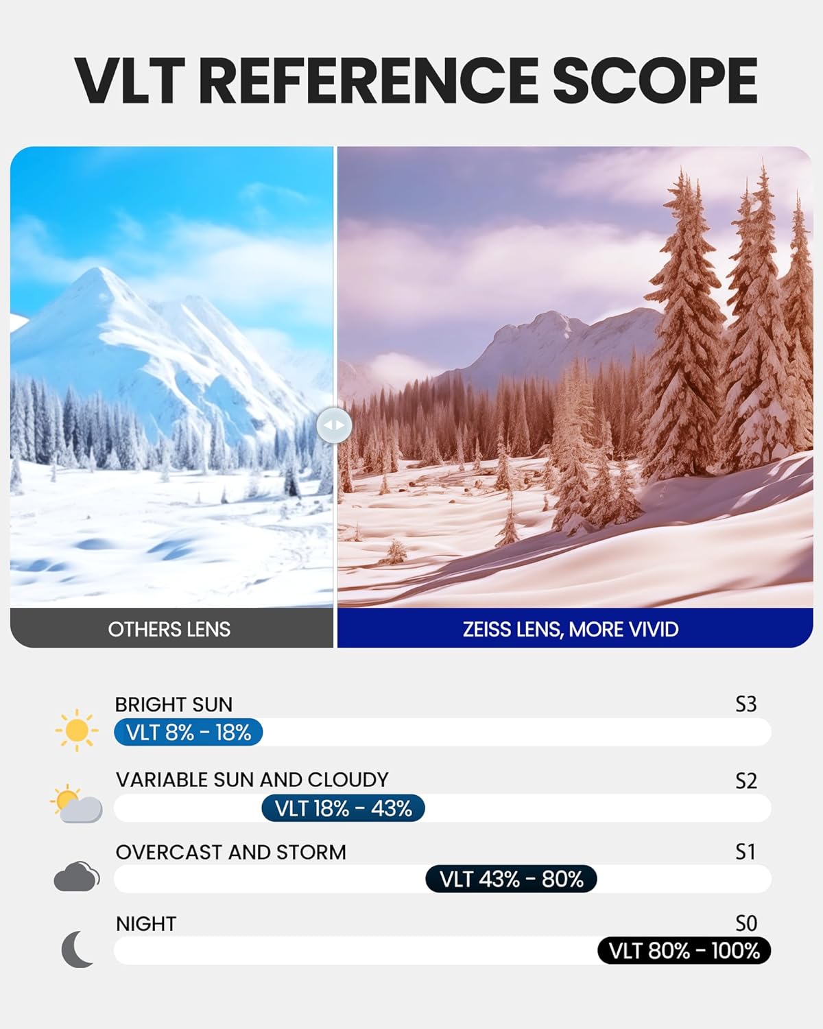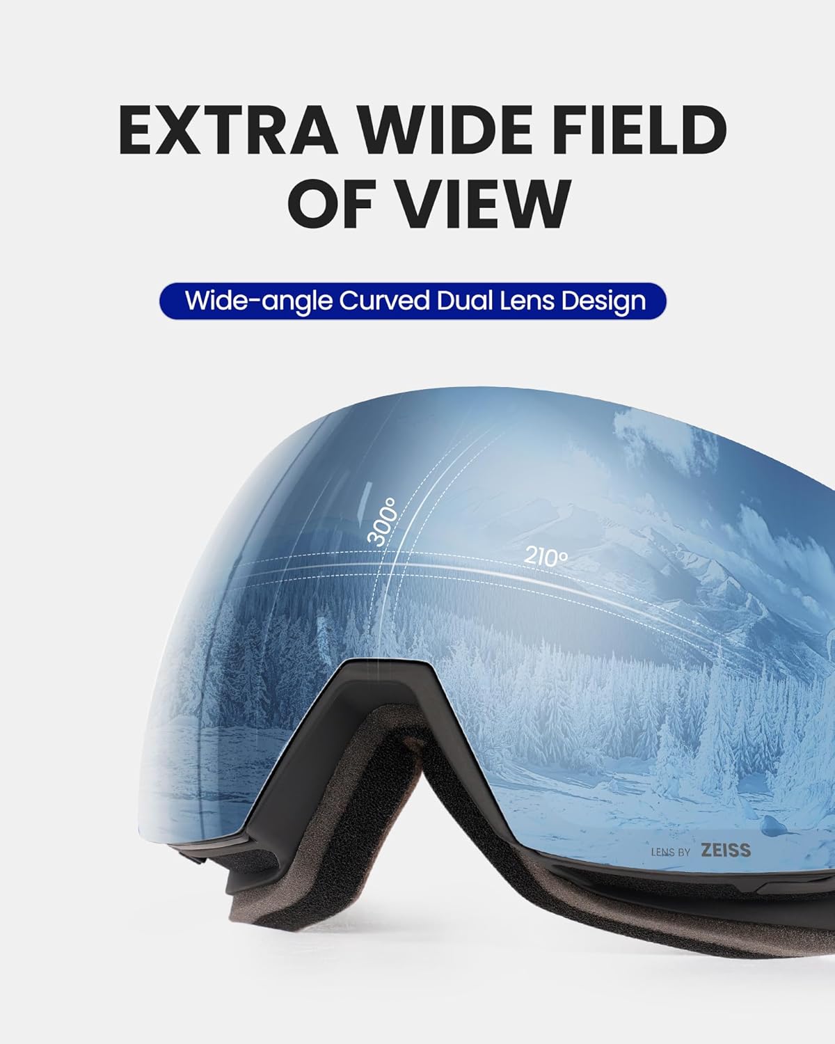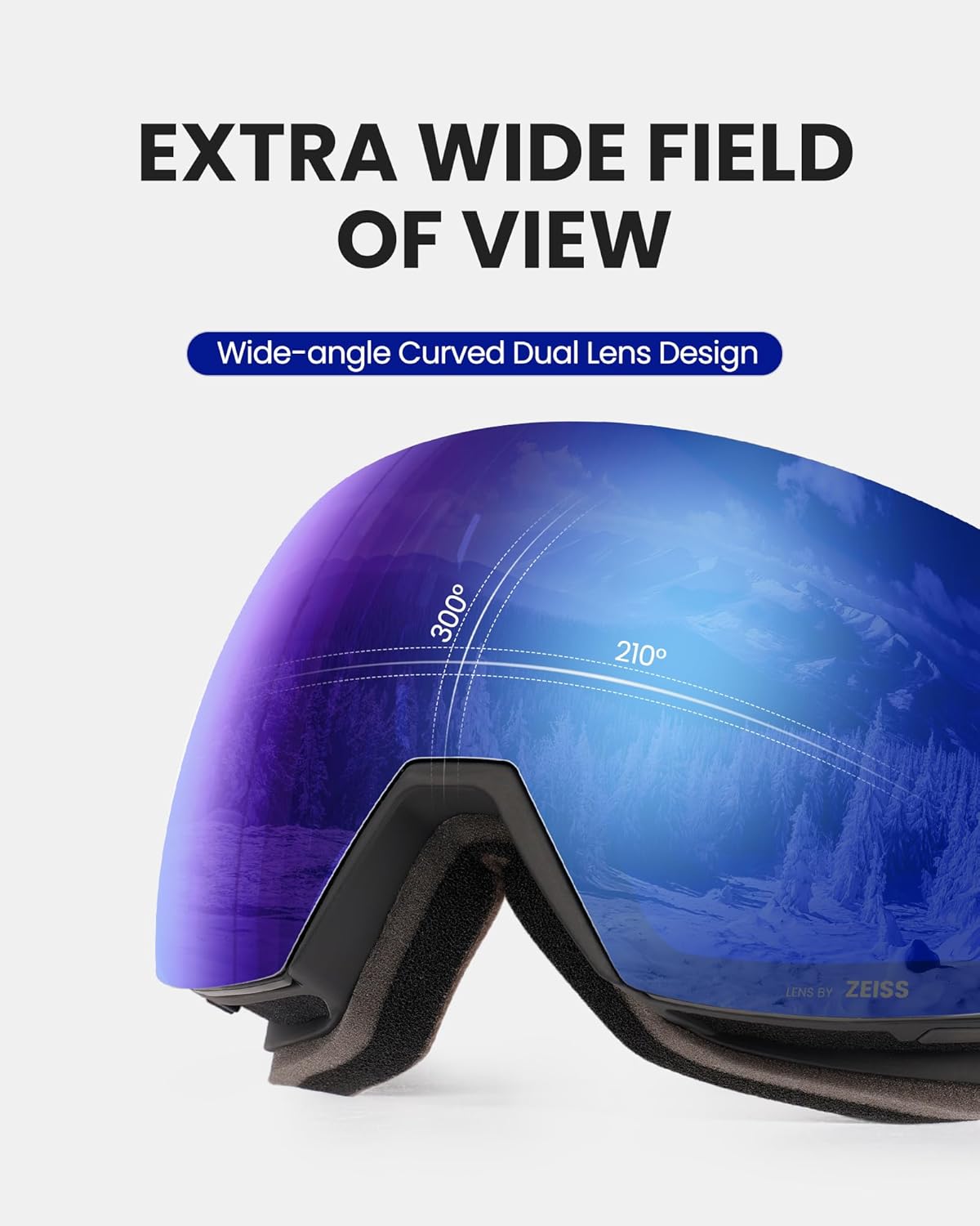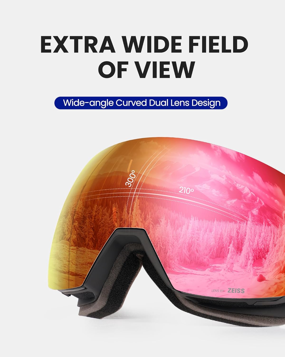 HD+ OM LENS BY ZEISS Technolgogy The OM HD+ lens captures and transmits more light, resulting in a clearer and more detailed image of the snow, which can enhance performance and safety in snow sports. OM HD Lenses Optimal Visual Perception Technology -OutdoorMaster's exclusive, highly refined polished lens surface largely reduces the refraction, allowing the focus to fall precisely on the retina. This innovative feature would let you easily see everything crystal clear with less eye strain. OTG (OVER-THE-GLASSES) The Ski Goggles PRO features an OTG design that lets you wear your glasses under the goggles. Universal Helmet Compatibility Extra long elastic strap ensures GREAT HELMET COMPATIBILITY with all helmets Extra Wide Field of View Toric Lens combines the low distortion of the cylindrical lens and the wide field of view of the spherical lens Specifications: - Features: - Lens Size: 8.27 inches (W) x 3.74 inches (H) - Lens Material: PC + UV - Frame Material: TPU - 100% UV400 protection - Anti-fog Coating VLT (Visible Light Transmission) Reference Scope: VLT 0-10% - For sunny days VLT 10-25% - For partially clouded to sunny days VLT 25-60% - For cloudy days and dusk VLT 60-90% - For night and heavily clouded days Notices: 1. In order not to damage the anti-fog layer when cleaning your goggles, carefully clean the lens with a soft tissue. 2. Lens replacement are sold separately. 3. Lens replacement is ONLY compatible with OutdoorMaster goggles. Not with goggles from any other manufacturer. Lens With Frame Package Includes: 1 x OutdoorMaster Goggles Ultra HD+ OM LENS BY ZEISS 1 x OutdoorMaster Replacement Clear Lens 1 x Protective Box 1 x Carrying Pouch