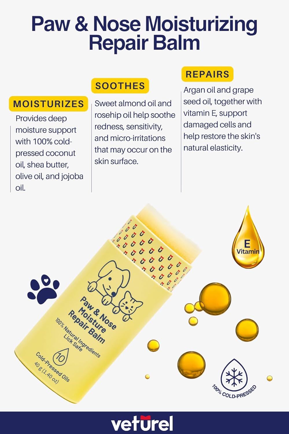 Veturel Paw & Nose Moisture Repair Balm | Heals, Regenerates & Strengthens Dry, Cracked & Damaged Paws and Noses | Natural Dog Teeth Cleaning Oral Care Spray | May Help with Bad Breath