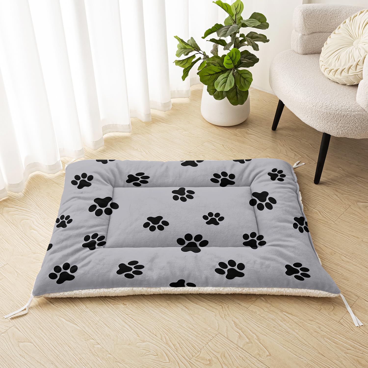 Stylish & Reversible Pet Mat – Comfort & Convenience for Your Furry Friend! Upgrade your pet’s comfort with our best-selling pet mat , designed for style, support, and easy cleaning . Featuring a reversible design—one side with vibrant prints and the other in solid colors—this dog pad or cat mat seamlessly blends with any home décor. Ultra-Soft & Orthopedic Support – Perfect for senior dogs, puppies, or pets with joint issues , this plush pet bed mat is made with cozy fleece and cotton padding to relieve pressure on hips and joints. Ideal for crate mats, dog beds, or travel use , it ensures restful sleep anywhere. Portable & Versatile – Lightweight yet durable, this pet cushion fits crates, carriers, car seats, and sofas , making it great for travel, vet visits, or home lounging . The four-corner straps secure it in place, preventing slips. Machine-Washable & Durable – Designed for easy care , simply toss in the wash (gentle cycle) and tumble dry. Fade-resistant fabric ensures long-lasting use, while the thick padding provides all-season comfort , keeping pets warm in winter and cool in summer. Available in Sizes for Every Pet – Medium (76×66 cm) fits cats, small dogs (Chihuahuas, Frenchies) , while the Large (106×81 cm) suits Golden Retrievers, Labradors, and bigger breeds . Perfect for dog crates, cat beds, or floor use ! Why Choose Our Pet Mat? ✅ Top-rated on Amazon – Loved by pet parents for softness & stability ✅ Travel-friendly & non-slip – Great for car mats, pet carriers ✅ Joint relief & comfort – Vet-recommended for aging/disabled pets ✅ Reversible & stylish – Matches any home décor