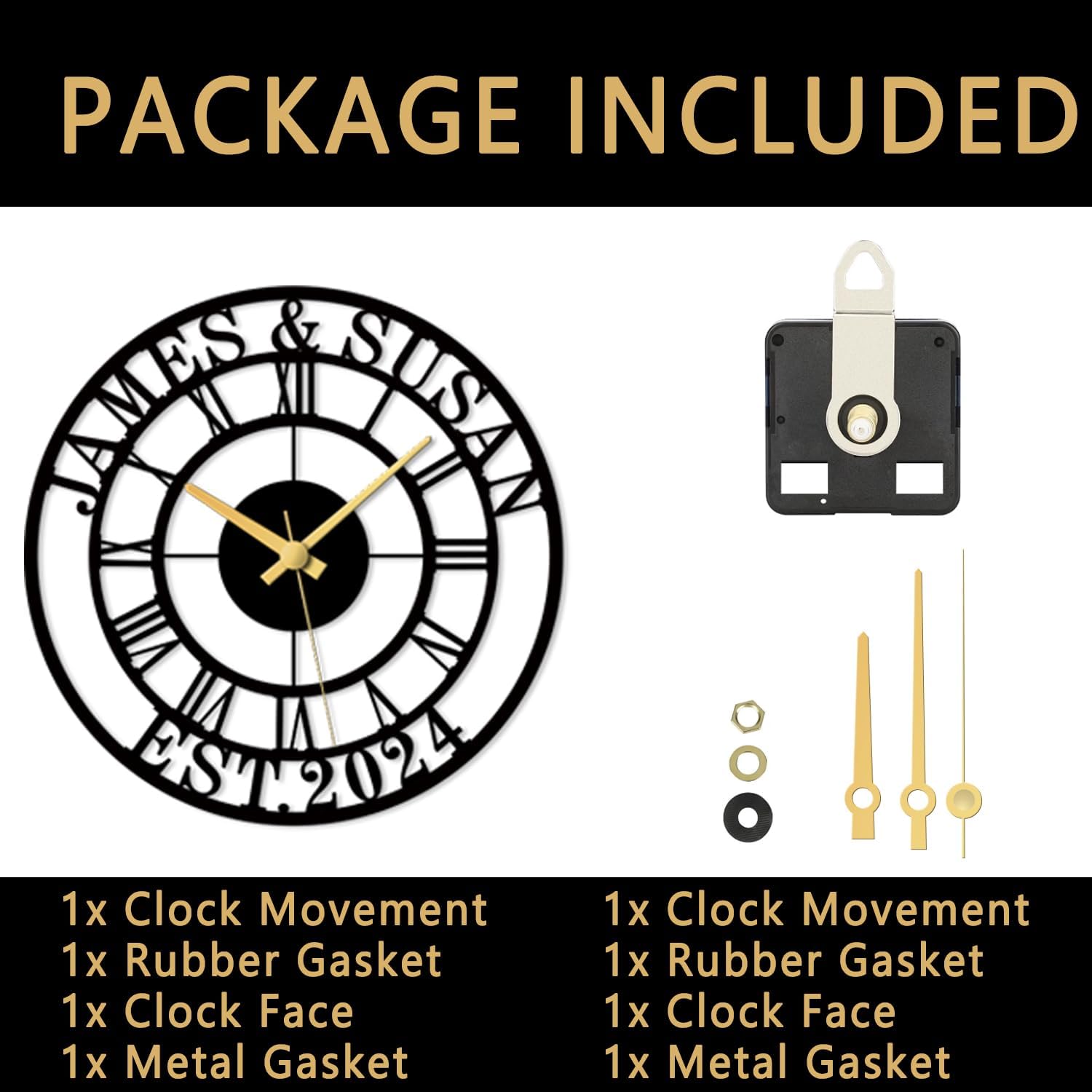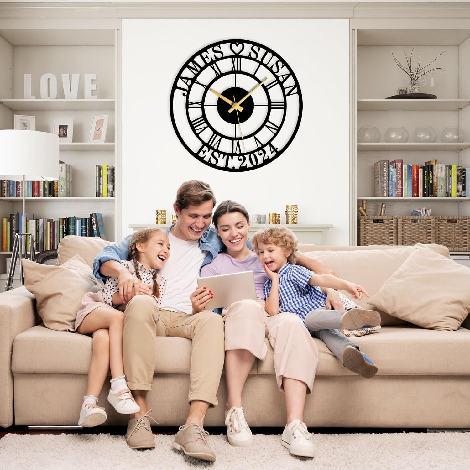 Product Description: Experience the elegant blend of functionality and aesthetics with our Personalized Last Name Large Wall Clock. Designed with vintage Roman numerals, this wall clock adds a classic touch to your decor, seamlessly fitting with various interior styles. Crafted from 14-gauge high-quality steel, this clock guarantees durability and longevity, retaining its aesthetic appeal over the years. It is not just a timepiece but also serves as an attractive wall decor sign, adding a unique appeal to your living room or bedroom. Moreover, with its personalized last name design, it becomes an ideal housewarming gift, offering a perfect balance of functionality and decor. Accentuate your living space with this vintage Roman numerals Metal Wall Art clock today!