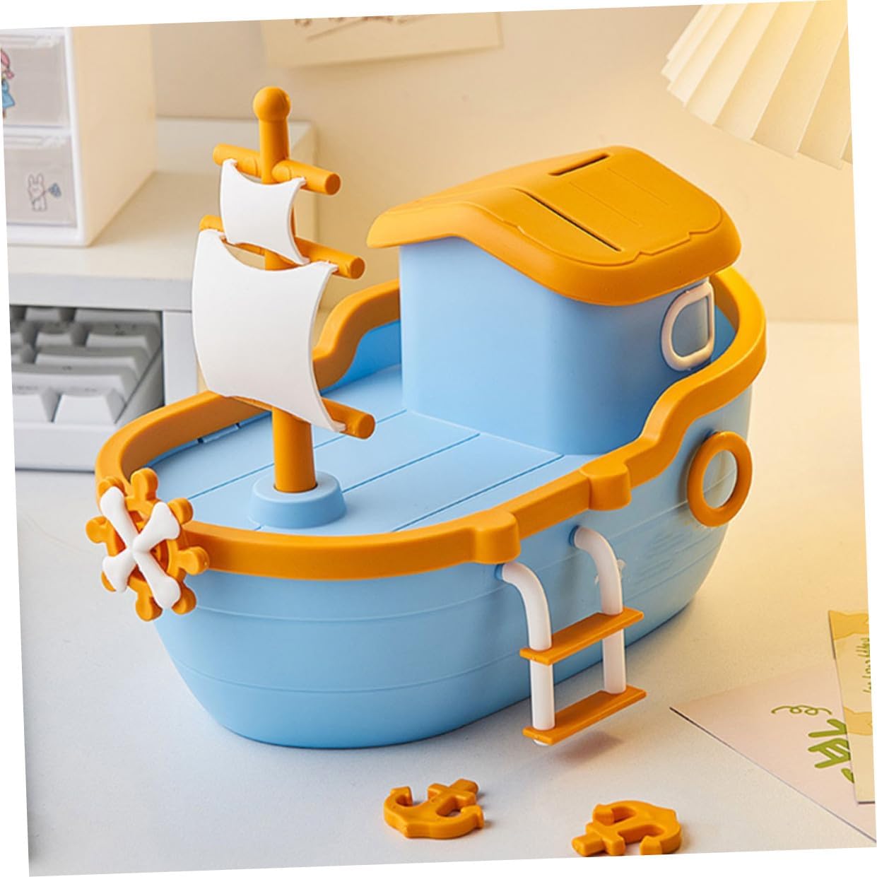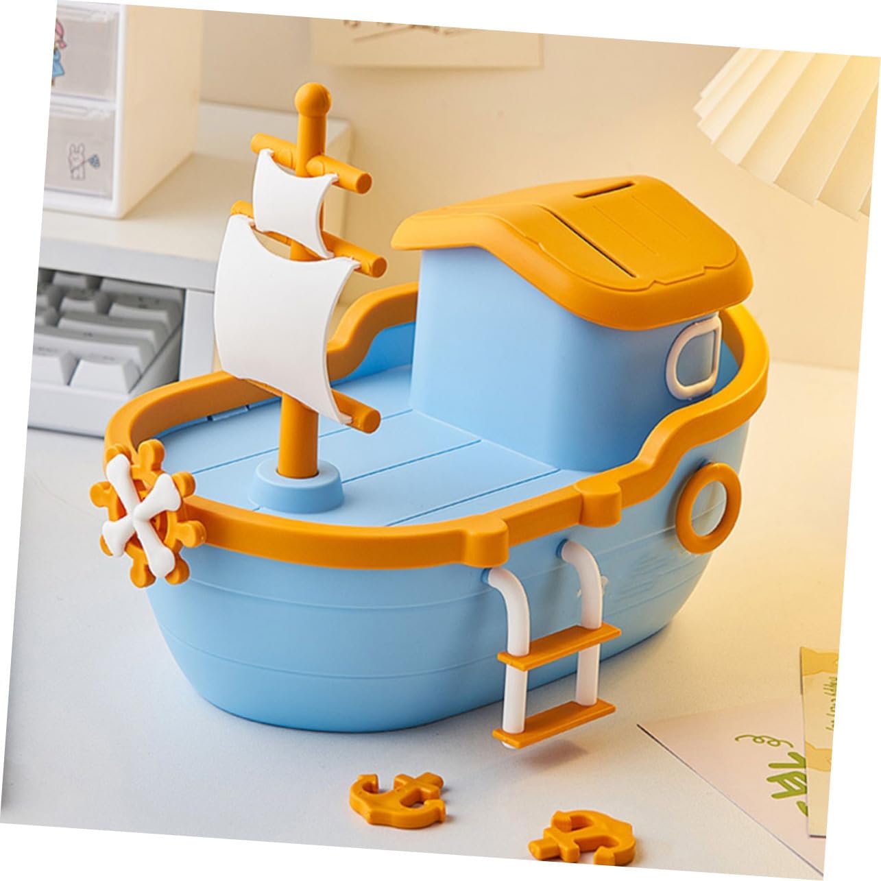 Package List 1 x Piggy Bank Features -Size:26.50X20.50X16.00cm/10.41X8.06X6.29in safe bank -Note: with or without logo. money jar -Material:Plastic money jar for cash saving -Color:Sky-blue saving pot -This money pot is made of good plastic material, and stable to use coin eating bank. will love learning to save their money as they fill up this creative pirate ship piggy bank funny coin bank. -Wide application, can be used as a surprising for festival, Christmas, new year, birthday, etc ' money banks. -Featuring craft and fine detail, this piggy bank looks charming, lovely and interesting s birthday -The funny shape is deeply loved by and can be used as a decoration for rooms money saving bank.Goods Descriptioncoin counting bank It is one of the for you.cute money saving bank want to develop good savings habits as soon as possible? Then, our piggy bank can help you! It is place to store coins, and you can also give it to your family and friends