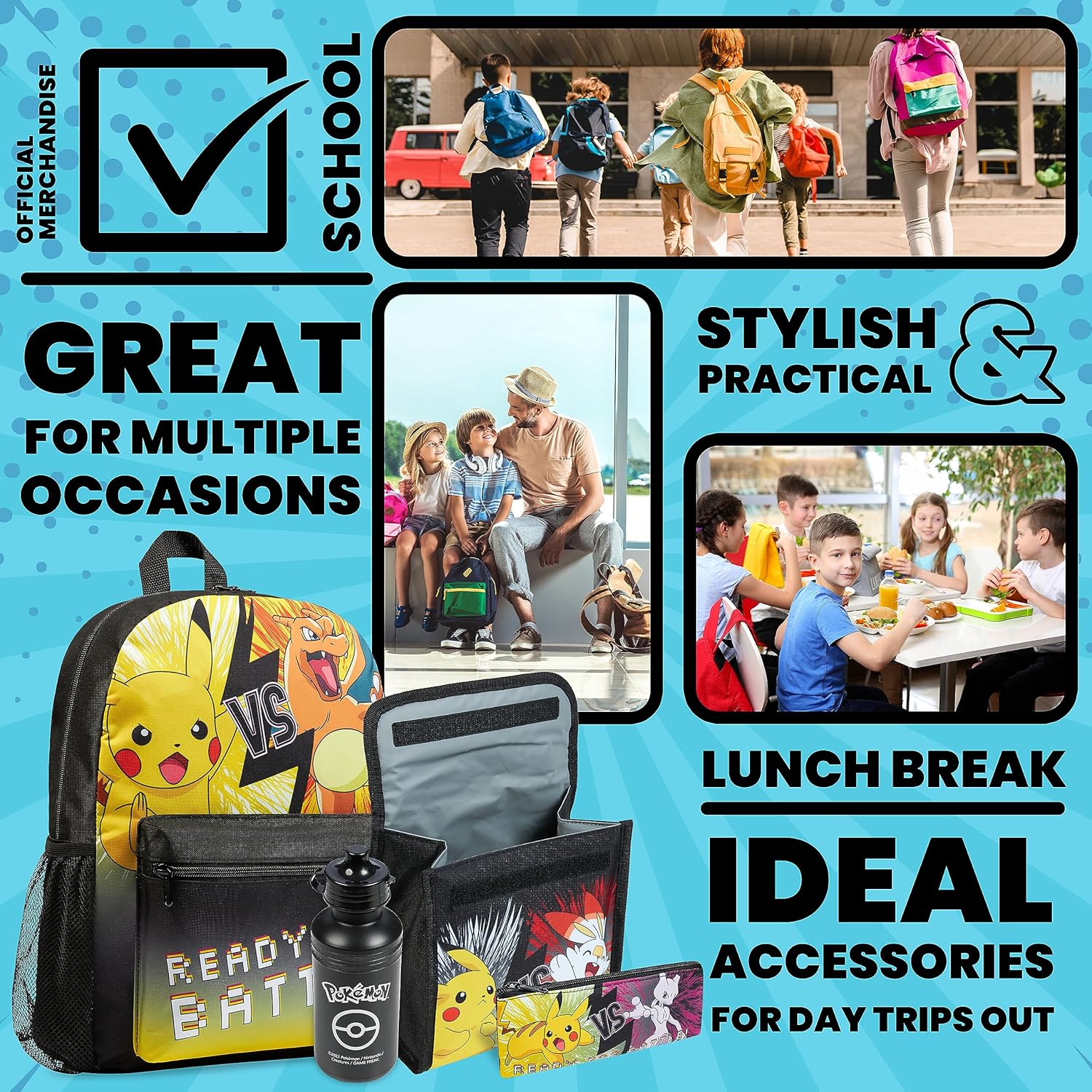 Pokemon girls and boys backpack 4 piece setThe ultimate back to school set for Pokemon fansThis 4 piece set includes a kids rucksack, kids insulated lunch bag, Pokemon pencil case, and 500ml water bottle, all featuring an eye-catching Pokemon-themed design that kids will be excited to show offSee images for more details and features on what's included in this awesome set!