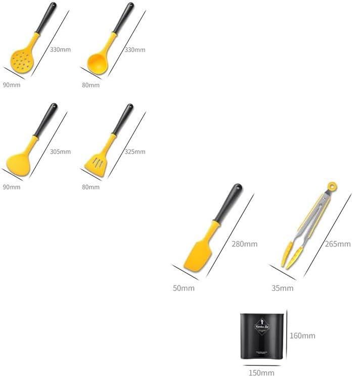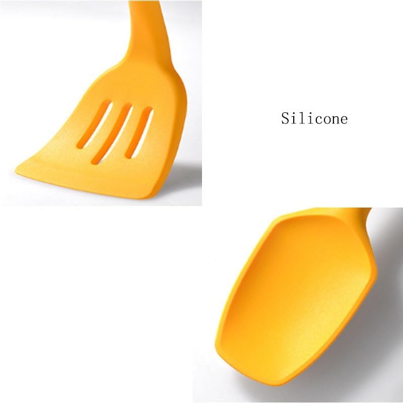 `: Spoon and Spatula SetMaterial: Silicone + stainless steelSize: As shownColor: As shownFunctions: Cooking, baking.The set includes: Soup spoons, stir-frying spatulas, strainers, etc.Shoulder bag: Shovel and spoon set * 1 set (excluding display items)Attention:1. Please allow 1-2cm error due to manual measurement. Thank you.2. The actual color of the product may be slightly different from the image shown. Please refer to the actual product.Investing in a handy set of spatulas can significantly enhance the smoothness and enjoyment of cooking.