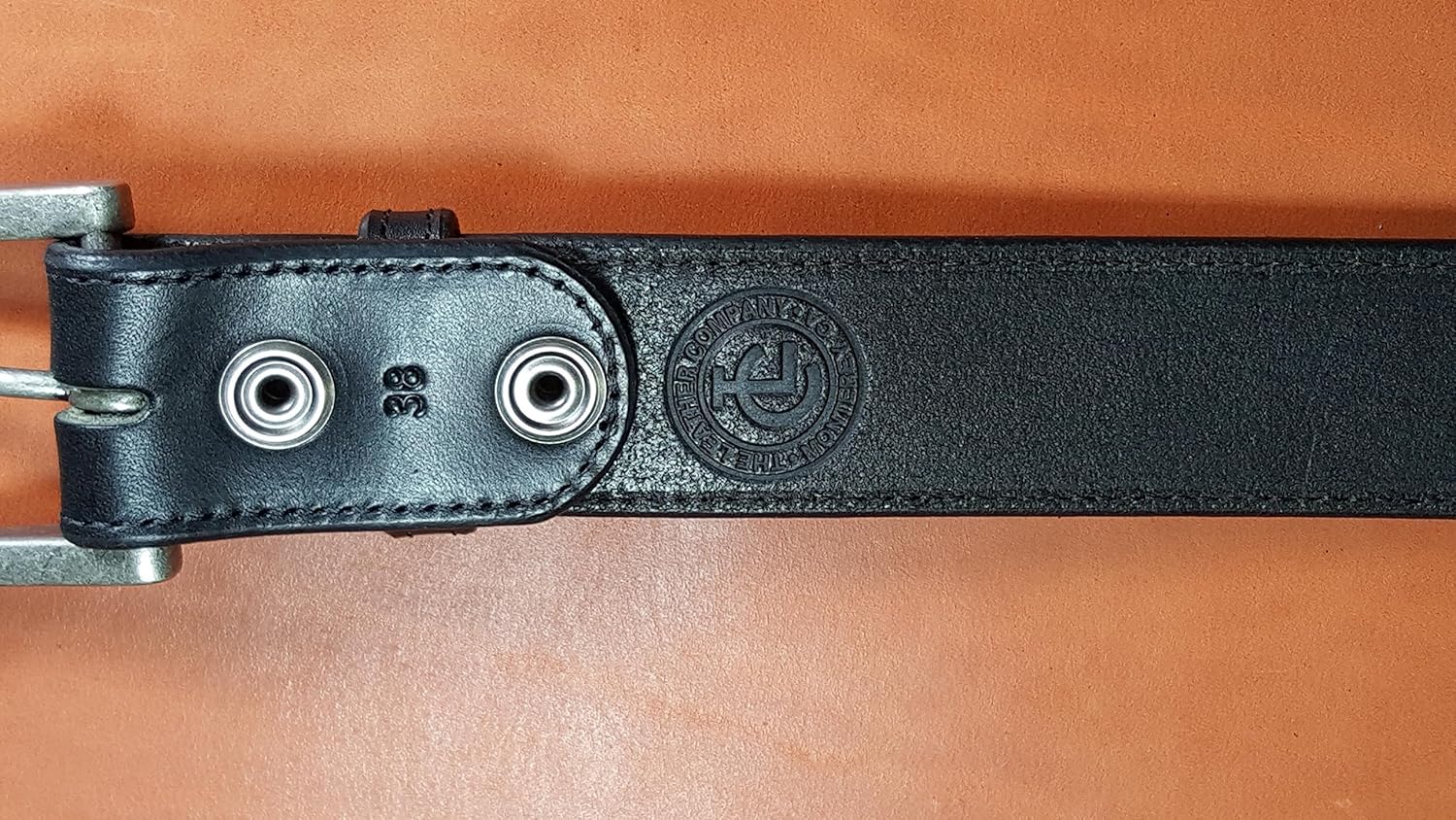 *** BELTS GUARANTEED FOR LIFE*** ***CHOOSE SIZE AND SOLID BRASS OR ANTIQUE NICKEL BUCKLE*** The Leather Company’s Latigo Leather belts are handmade from our finest selection of California Latigo. This leather is tanned in the USA. Decorative stitching has been added around the edge with small, neat stitching for a clean and more finished appeal. Quality edging and Italian coloring is applied to edge to give a rounded and smooth edge that won’t cut into your waist and become uncomfortable to wear. ***FREE CUSTOM STAMPING UPON REQUEST*** Lettering on our free custom-stamped belts are stamped on the top/visible side when wearing, in standard 3/4" lettering, middle back as shown in picture; unless further details are discussed prior to your order. No punctuation available; 10 character limit. ***ADDITIONAL CUSTOMIZATION*** For an additional fee, belts may be customized with the lettering heat-embossed on the inside/hidden side when wearing, in standard 3/8" lettering, middle back as shown in picture; unless further details are discussed prior to your order. No punctuation available; 25 character limit. CUSTOM BELT SALES ARE FINAL! NO REFUND OR EXCHANGE, SO PLEASE CHOOSE THE CORRECT SIZE BASED ON OUR FORMULA WRITTEN BELOW!***FIRST: choose Belt Size: 28" to 60" Belt sizes are standard in stock. 62" up to 80" are custom orders, additional fees apply. Belt sizing is made easy by following 3 simple steps: 1. Take your current size pants you wear regularly. 2. Add 2” to this size. 3. Round up to the nearest even size. Example: Pants 36 + 2 = 38 Belt Pants 33 + 2 = 35 round up to 36 Belt. ***SECOND: Choose Buckle Color: Antique Nickel or Antique Brass - Remember, this belt will last a lifetime and should be ordered to fit. :)