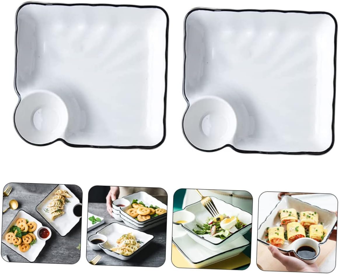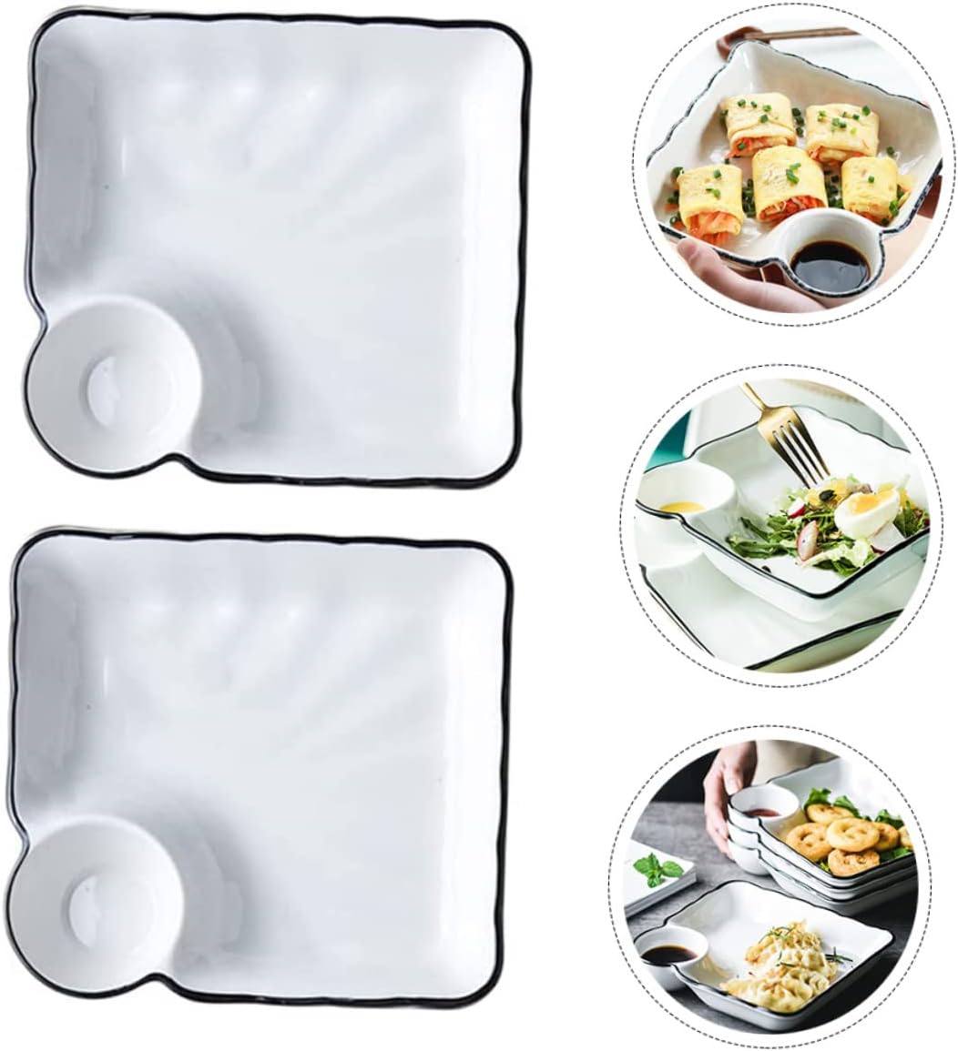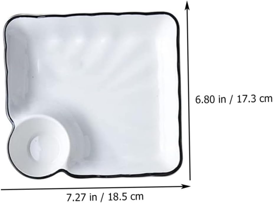 Package List 2 x Dumpling Plates Characteristics -Color:Assorted Color dessert plate -Size:18.50X17.30X3.80cm/7.27X6.80X1.49in plastic dishes -Material:Ceramic snack tray -The plate is contacted using a food-grade material, can its durability and high-temperature resistance dumpling dish. -Excellent workmanship, with a smooth surface, it is easy to clean dinnerware sets. -Not only a food serving plate, but also a gorgeous ornament for your home dumpling dip -With high-tech craftsmanship, to store your high-temperature food at ease plates with sauce compartment. -Also, can be used as a delicate photo props, birthday and wedding , etc salad Goods Descriptiondumpling sauce plate Are you looking for a food plate to use in your kitchen or for special occasions? This plate is made of , which is and for the lasting use.ceramic plates It comes with a sauce compartment design, which can give you a cozy visual effect